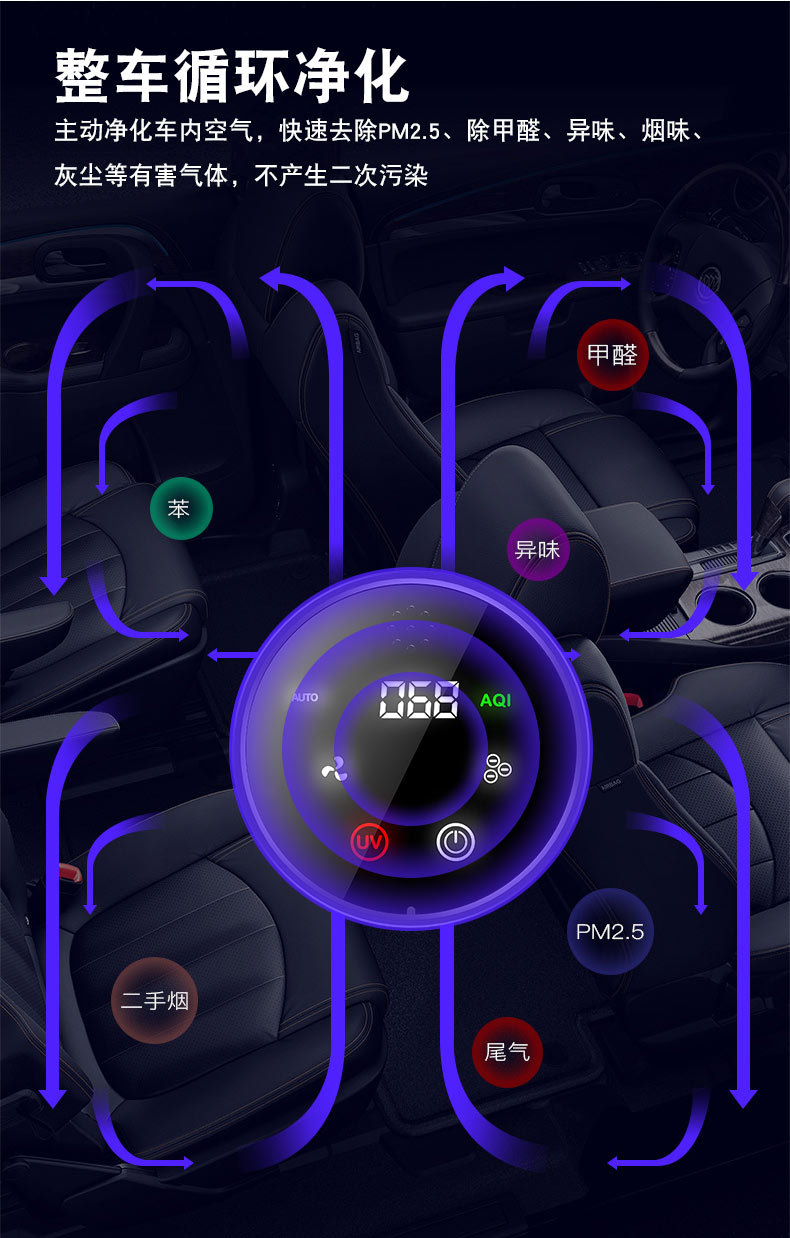 ▲智能全自动净化,森林级负离子享受,缓解驾驶疲劳,改善睡眠,清新空气;