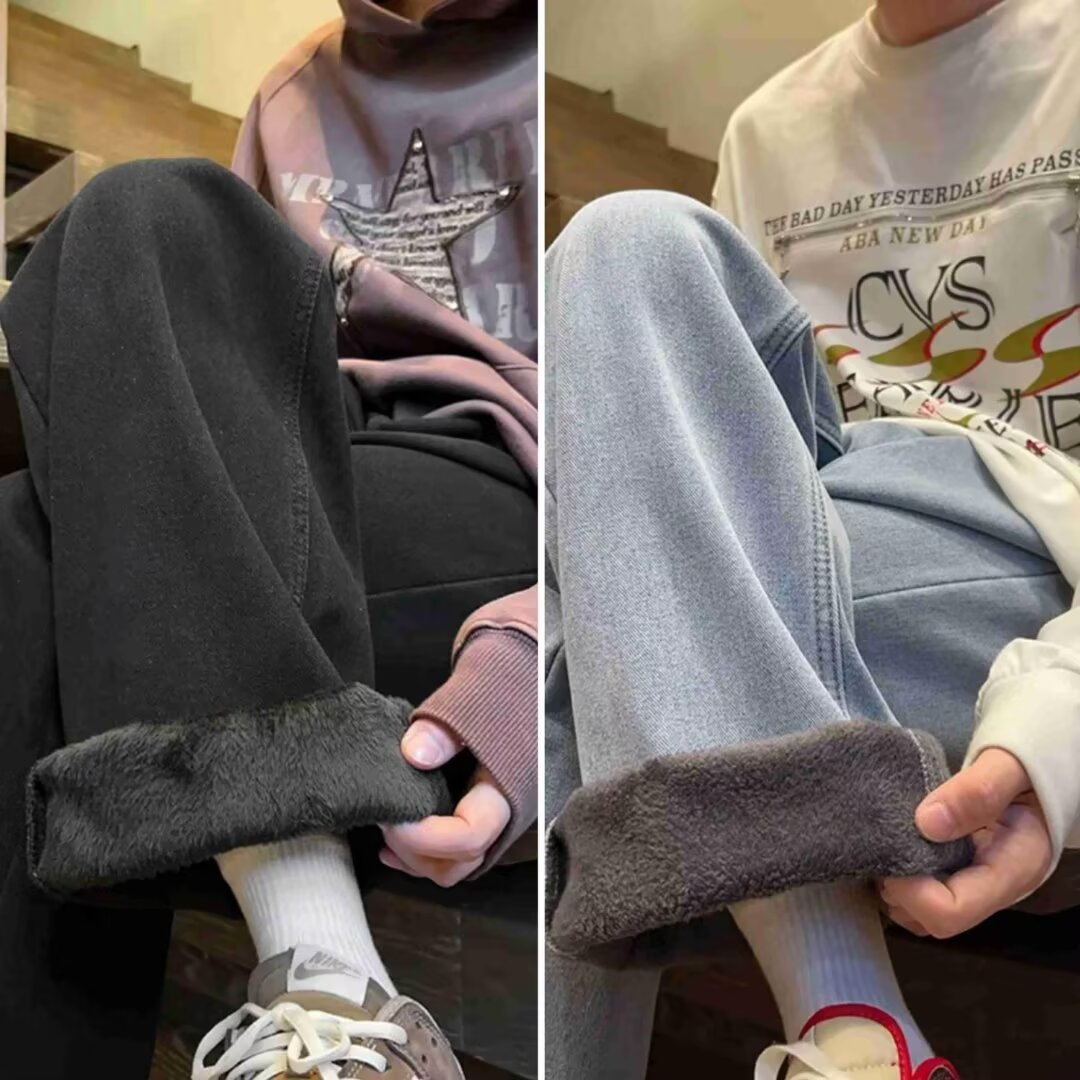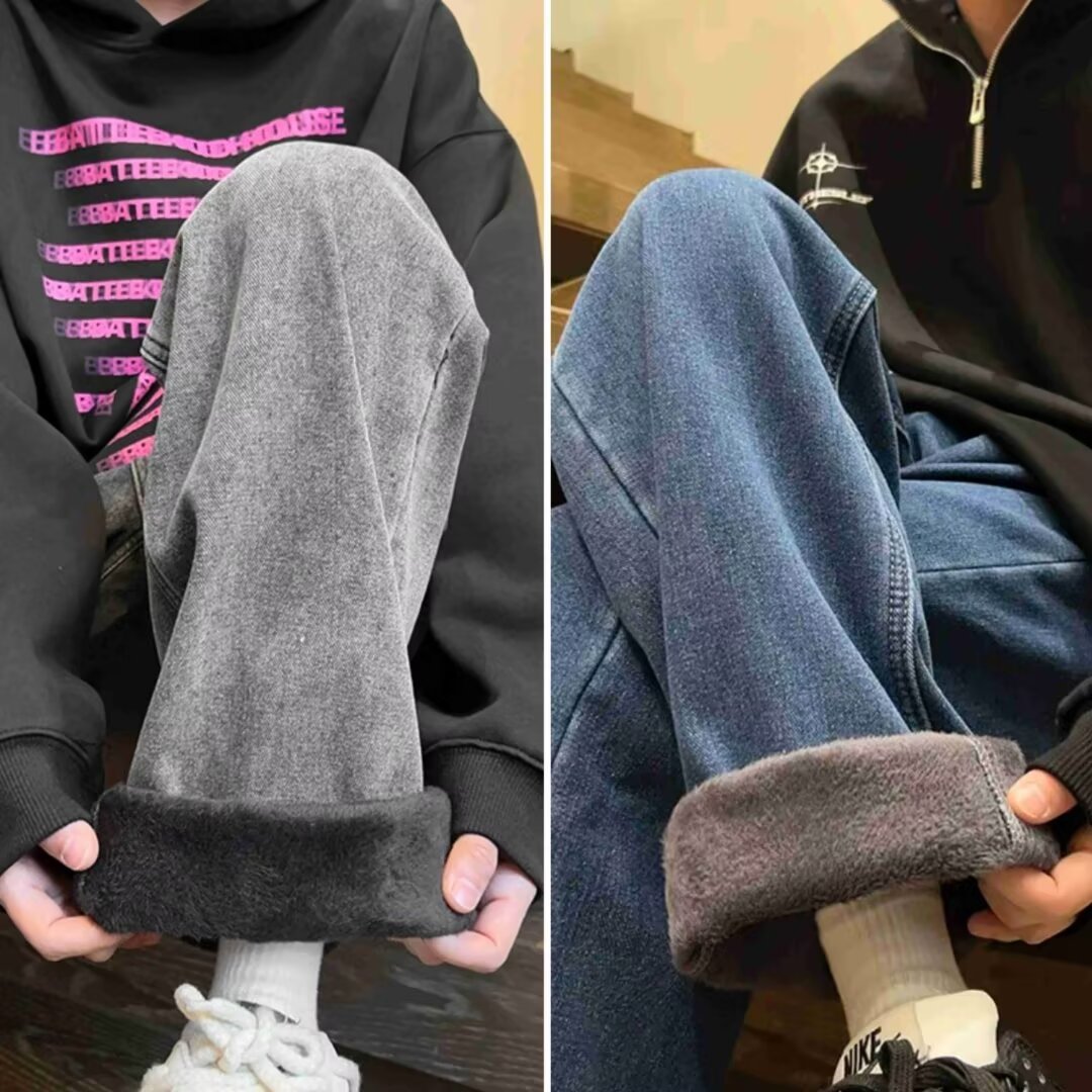 Прямые пуховые джинсы мужские осенние и зимние мойки свободные ретро прилив повседневные брюки 2024 новые брюки мужчины