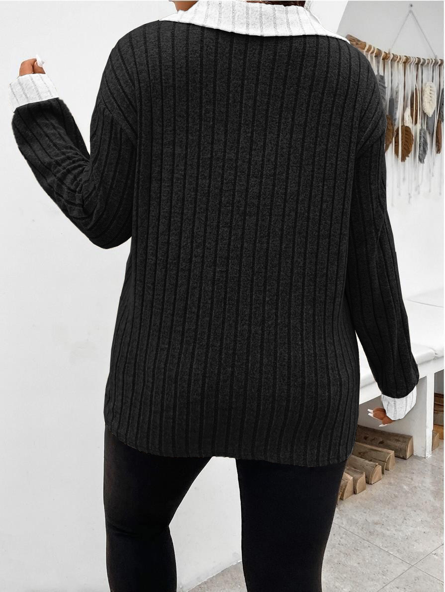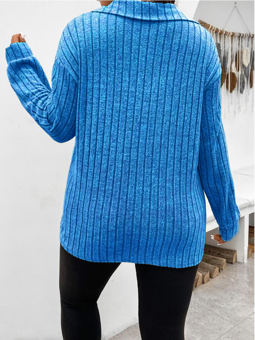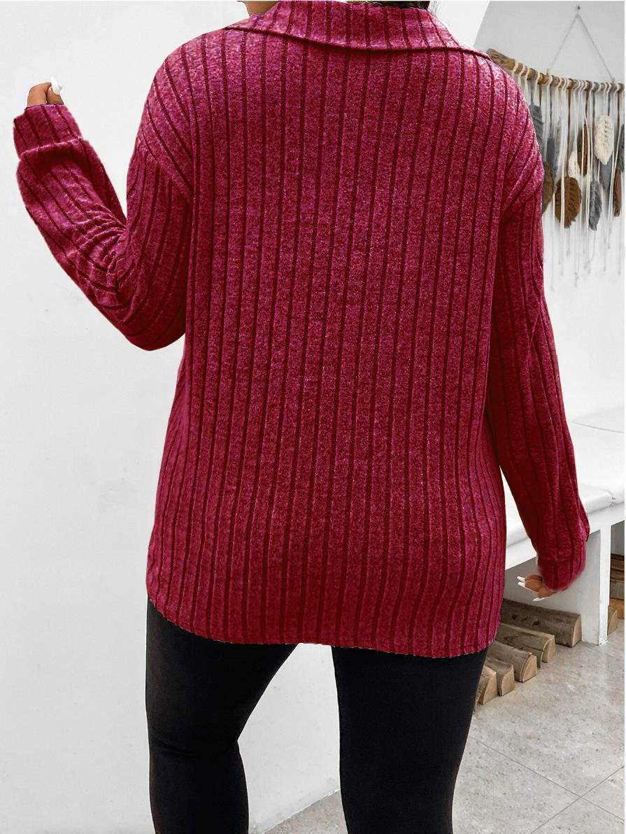 Amazon, осень и зима 202, новые свободные однотонные женские топы больших размеров, v-образные лацканы, футболка с длинными рукавами и полосками, матовая футболка