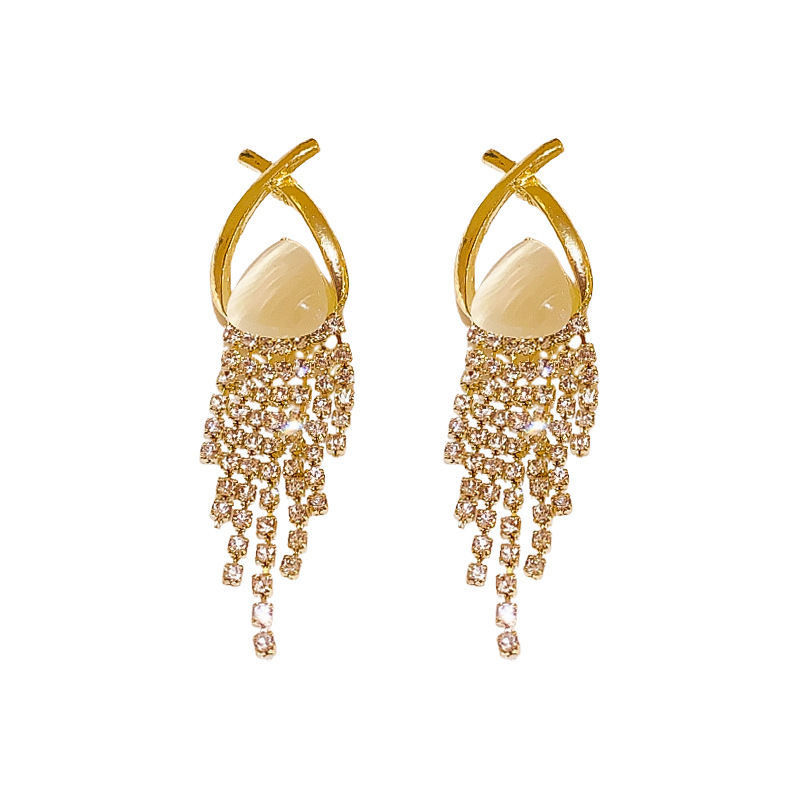 Серебряная игла с бриллиантами кошачьим глазом с кисточками серьги легкие экстравагантные серьги дизайн ушной подвески
