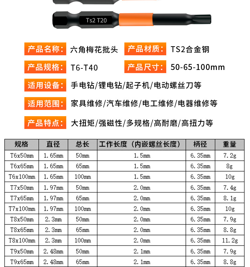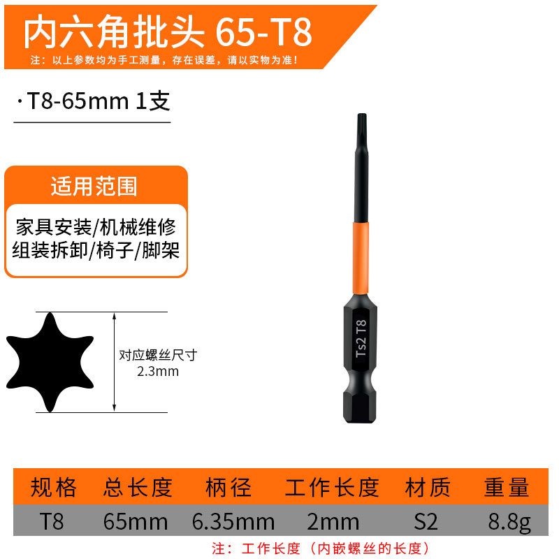 Шестигранная головка сливы [T6-T40*50MM] комплект из линейного предмета; Шестигранная головка сливы [T6-T40*65MM] комплект из линейного предмета; Шестигранная головка сливы [T6-T40*100MM] комплект из линейного предмета; Шестигранная розетка сливы [T6*50 мм]; Шестигранная розетка сливы [T7*50 мм]; Шестигранная розетка сливы [T8*50 мм]; Шестигранная розетка сливы [T9*50 мм]; Шестигранная розетка сливы [T10*50 мм]; Сливовая шестигранная головка [T15*50 мм]; Шестигранная розетка сливы [T20*50 мм]; Шестигранная головка сливы [T25*50 мм]; Шестигранная розетка сливы [T27*50 мм]; Шестигранная розетка сливы [T30*50 мм]; Шестигранная розетка сливы [T40*50 мм]; Шестигранная розетка сливы [T6*65 мм]; Шестигранная розетка сливы [T7*65 мм]; Сливовая шестигранная головка [T8*65 мм]; Сливовая шестигранная головка [T9*65 мм]; Шестигранная розетка сливы [T10*65 мм]; Сливовая шестигранная головка [T15*65 мм]; Шестигранная розетка сливы [T20*65 мм]; Сливовая шестигранная головка [T25*65 мм]; Сливовая шестигранная головка [T27*65 мм]; Шестигранная розетка сливы [T30*65 мм]; Шестигранная розетка сливы [T40*65 мм]; Сливовая шестигранная головка [T6*100 мм]; Сливовая шестигранная головка [T7*100 мм]; Сливовая шестигранная головка [T8*100 мм]; Сливовая шестигранная головка [T9*100 мм]; Сливовая шестигранная головка [T10*100 мм]; Сливовая шестигранная головка [T15*100 мм]; Сливовая шестигранная головка [T20*100 мм]; Сливовая шестигранная головка [T25*100 мм]; Сливовая шестигранная головка [T27*100 мм]; Сливовая шестигранная головка [T30*100 мм]; Сливовая шестигранная головка [T40*100 мм]