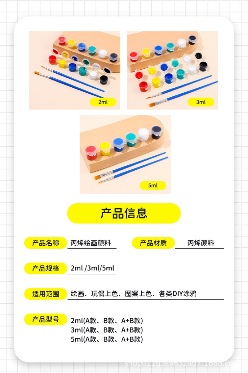 Трансграничная акриловая краска гипсовая кукла для детей diy рисунок граффити 3 мл 12 цветов 6 сшитые краски краски