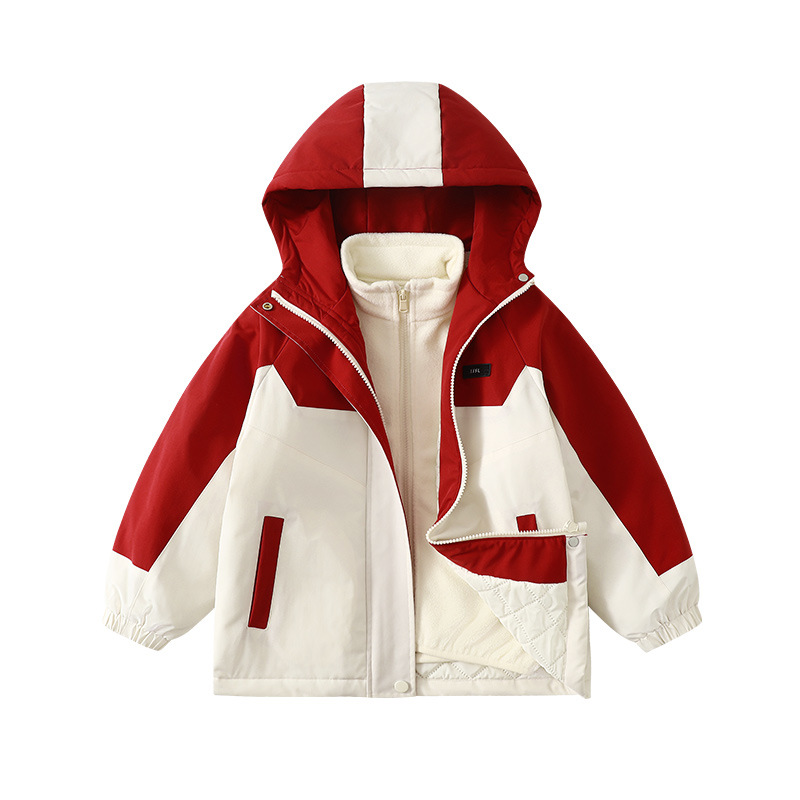 Детская куртка 2025 года с флисовой подкладкой, ветрозащитная, водонепроницаемая, теплая, для активного отдыха, с внутренним слоем из полярного флиса, комплект «три в одном» из 0.05kg предметов