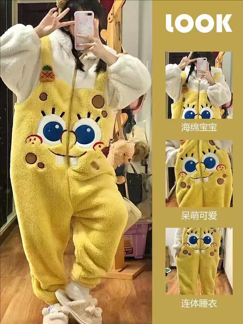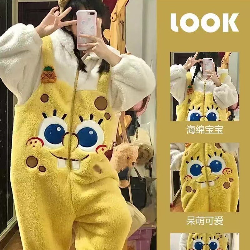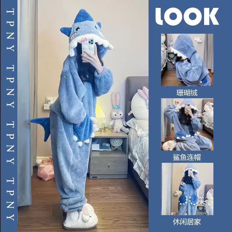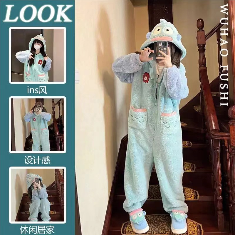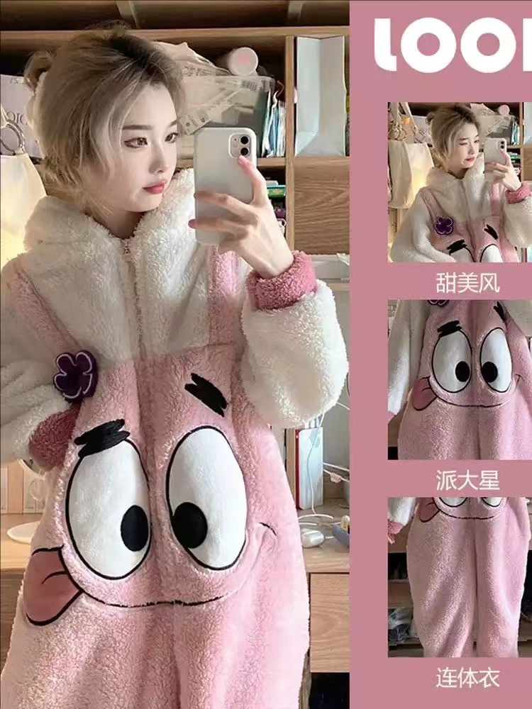 Новинка 2025: утолщенная плюшевая хлопковая пижама-комбинезон 280г с мультяшными персонажами — рыбка-клоун, синяя акула, Патрик Стар.