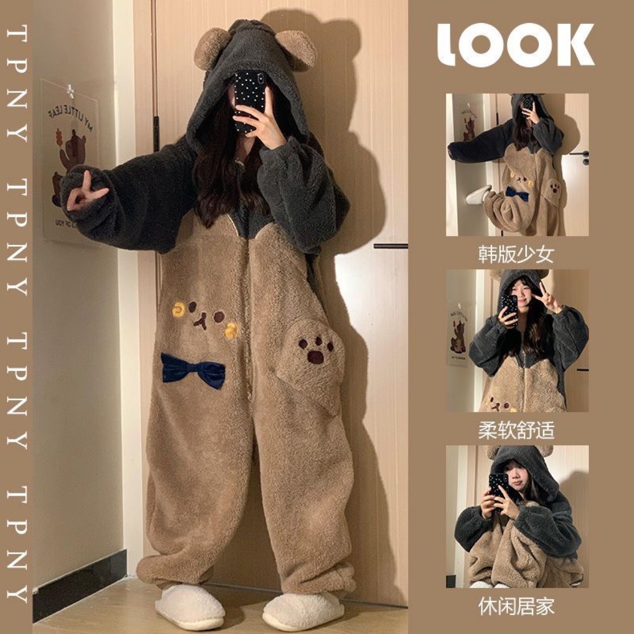 这个是供天猫 淘宝等平台专做质量好一点的产品,市场上同款会有,价格低的也有,但是我们做批发的来说,作为源头供应商,我们和零售不一样,我们实打实的一分钱一分货,除非大量拿货,可以和我们客服沟通价格,散单几件几件的,不议价的,广东 浙江等可以走专线的,量大物流费用便宜,这款连体衣面料采用的是260克重的舒棉绒,长毛舒棉绒,蓬松保暖,版型大,作为家居服穿,很舒服,做了四个码,衣服上标签是1-2-3-4. 衣服版型偏方便客户