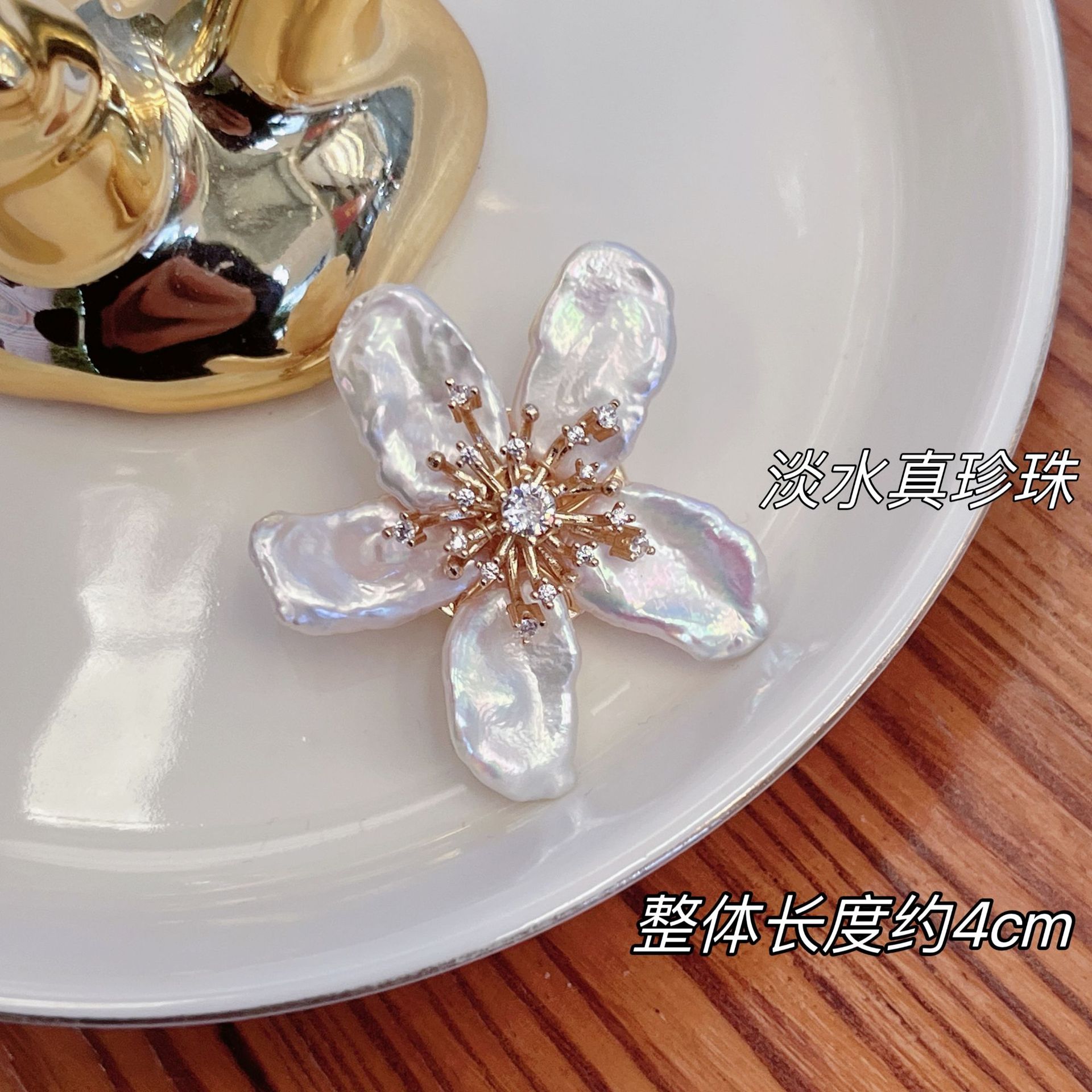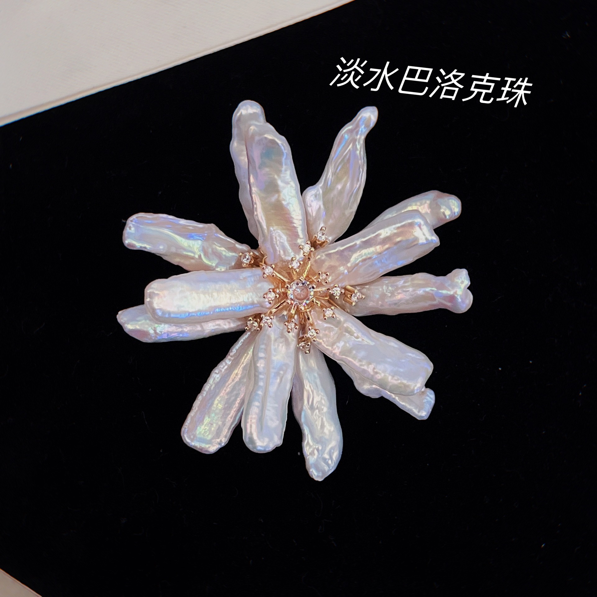 Брошка с большим лепестком* из пресноводного барочного жемчуга (отправка случайным образом!); Брошь с барочным жемчугом из пресной воды в форме небольших лепестков* (отправка случайным образом!)