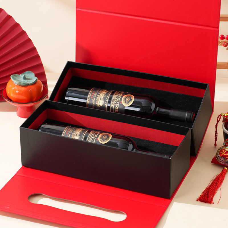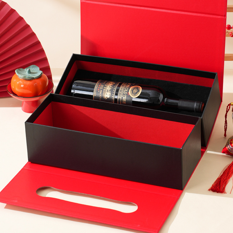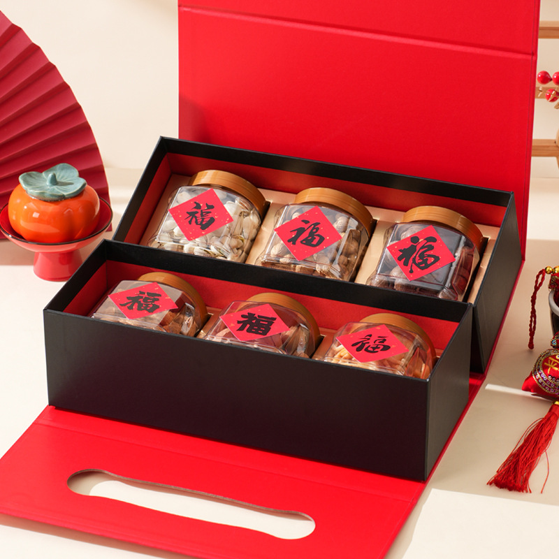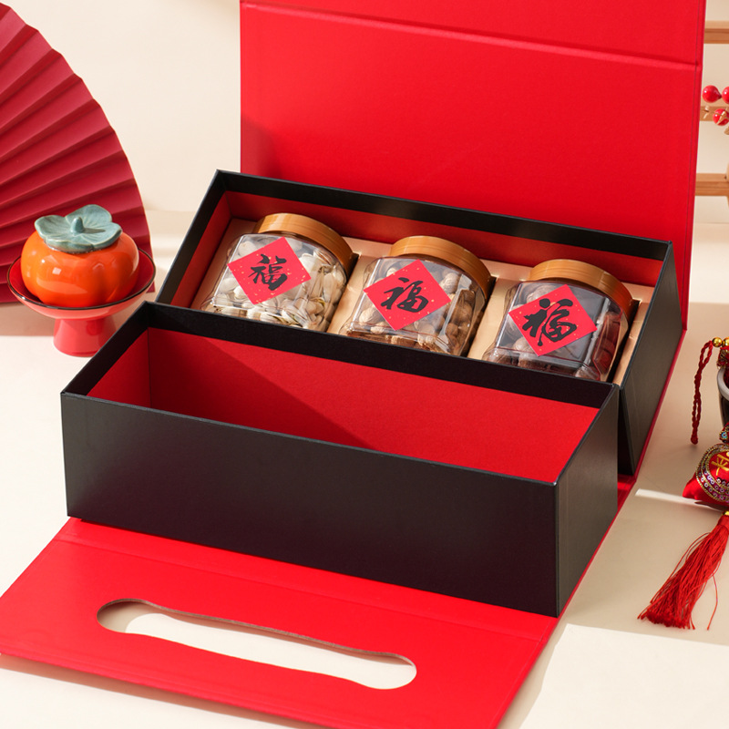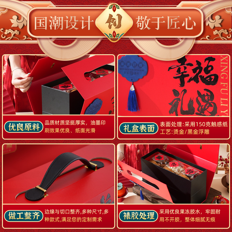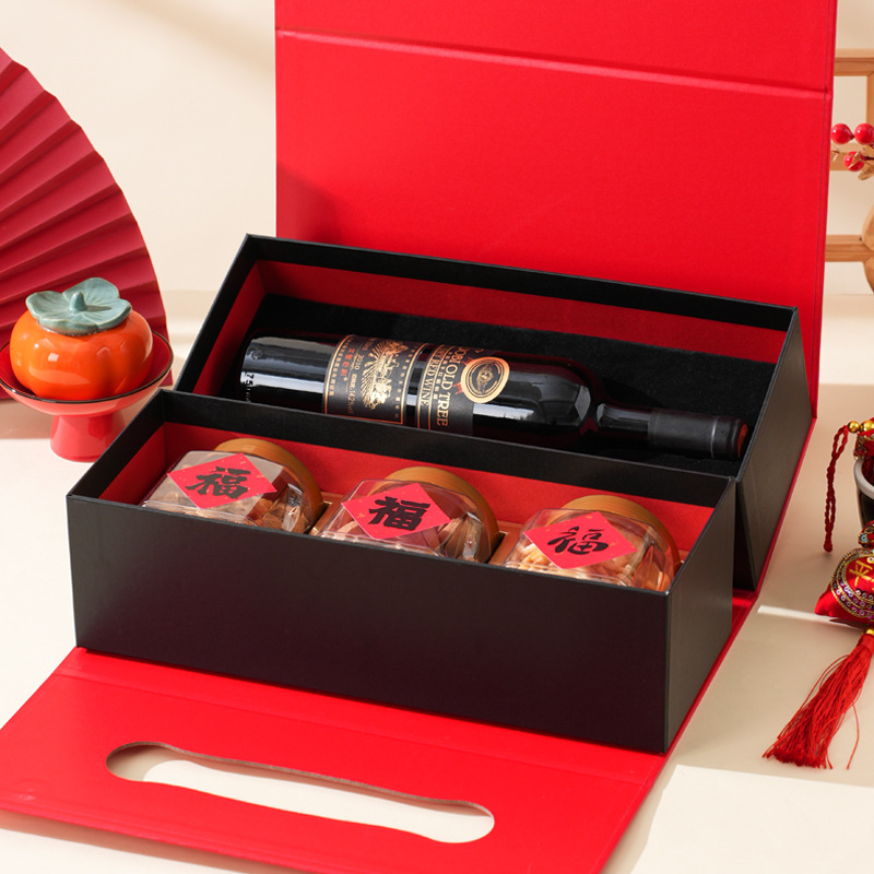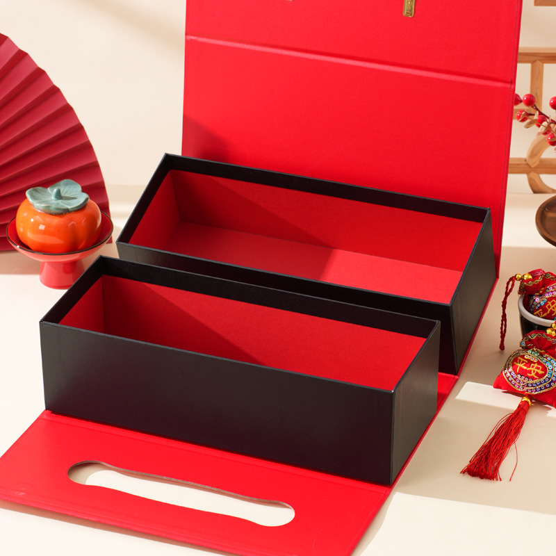 Подарочная коробка на Новый год 2026 (Китайский Новый год) — пустая, двухслойная, красная, для орехов и вина, упаковка для подарков на Новый год, День рождения, День святого Валентина