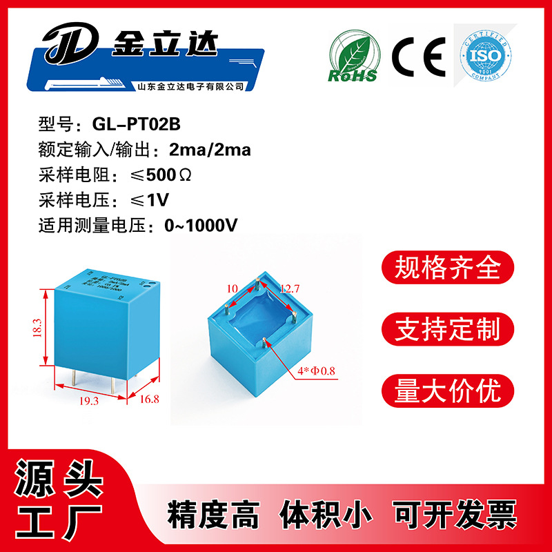 Миниатюрный трансформатор напряжения Jinlida PT02B/01B/107, 2 мА: ток 2 мА, для печатных плат, 220В/380В