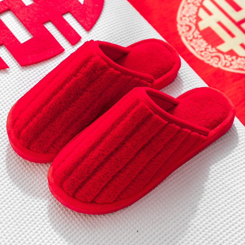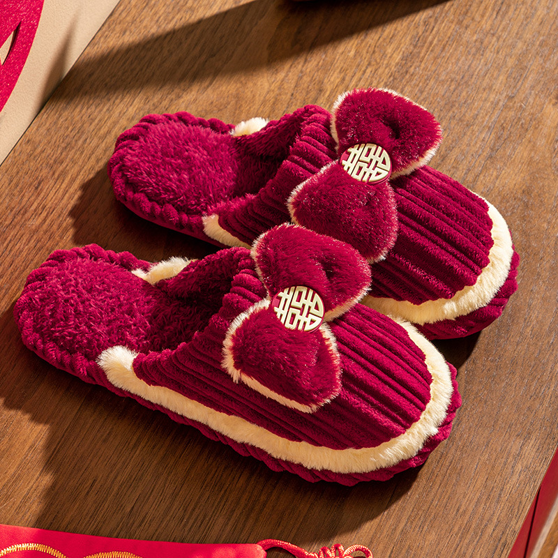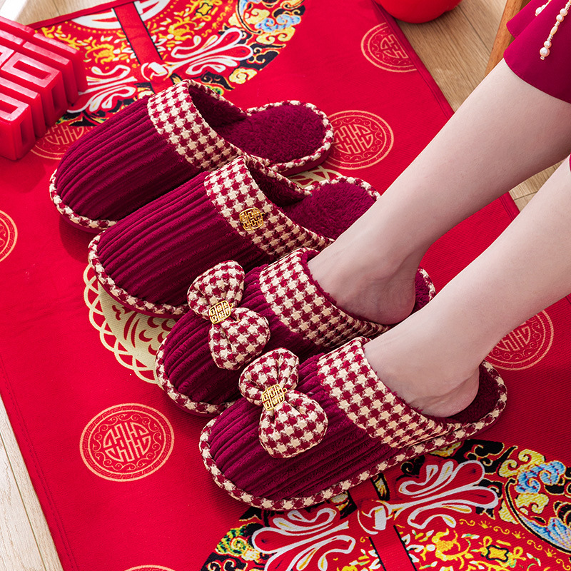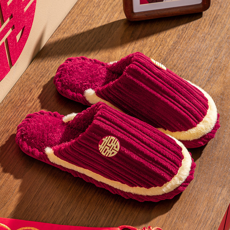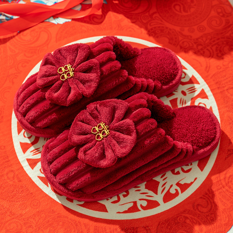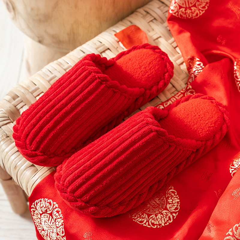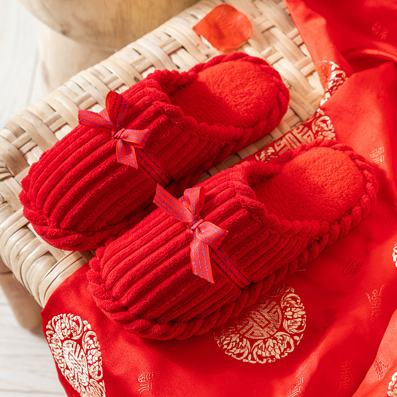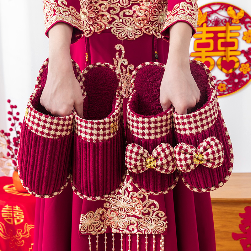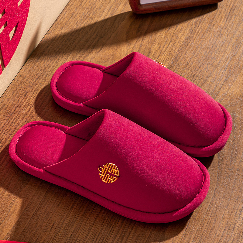 Свадебные тапочки женские праздничные красные пары хлопковых тапочек свадебные осенние и зимние дома