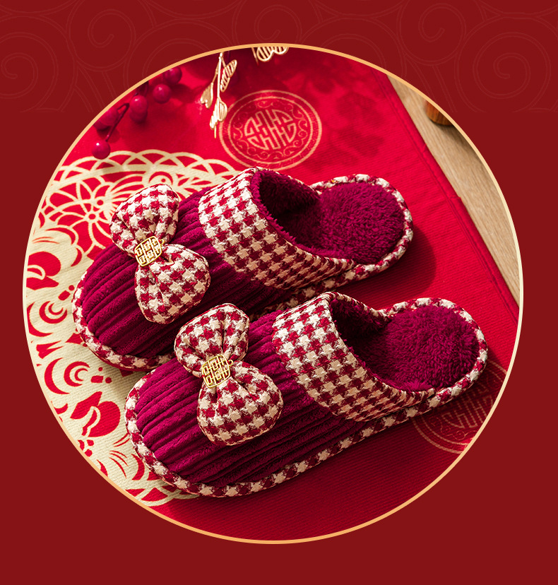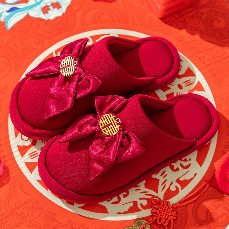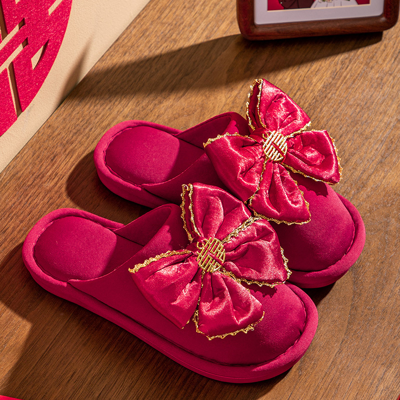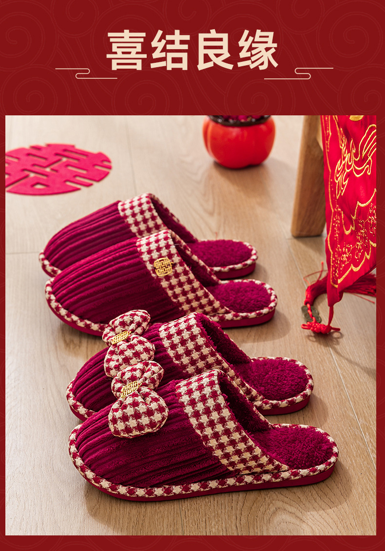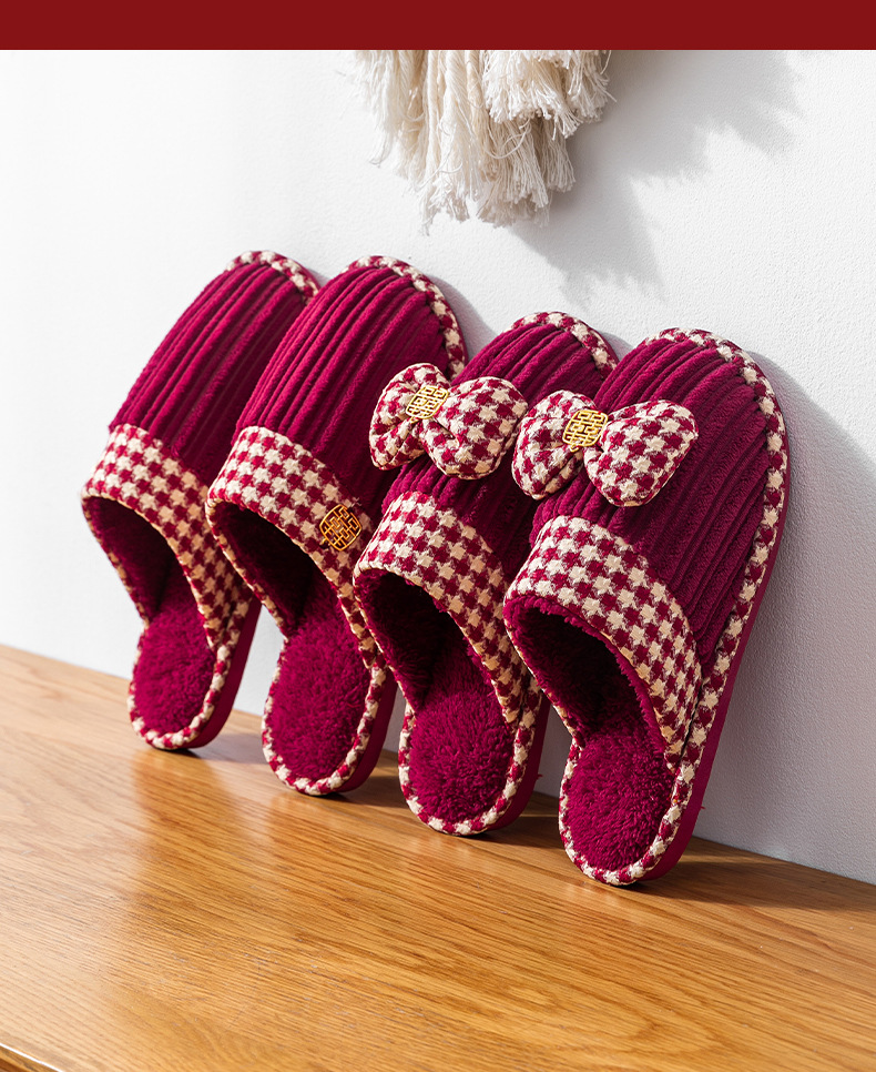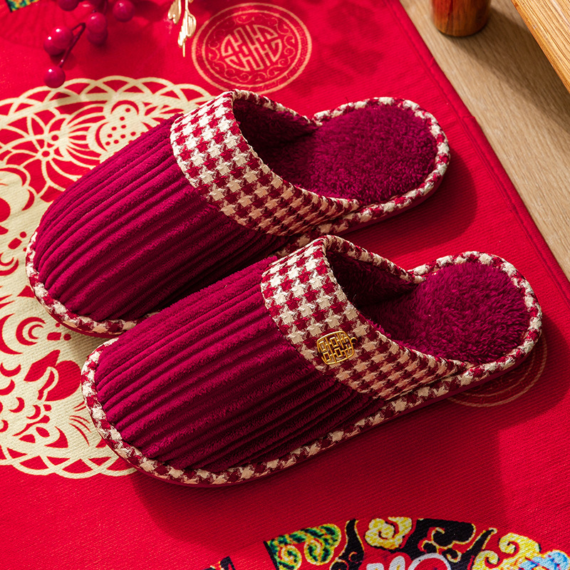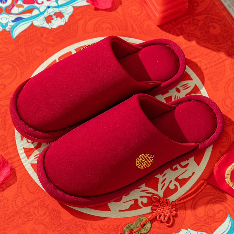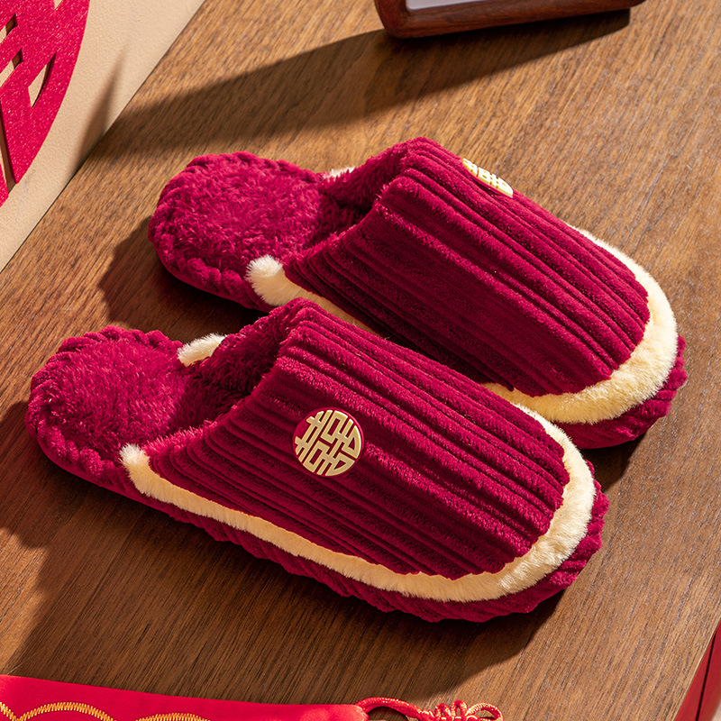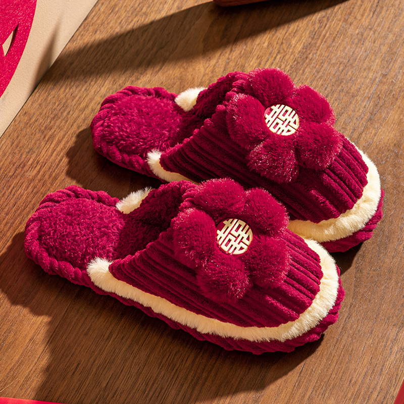 Свадебные тапочки женские праздничные красные пары хлопковых тапочек свадебные осенние и зимние дома