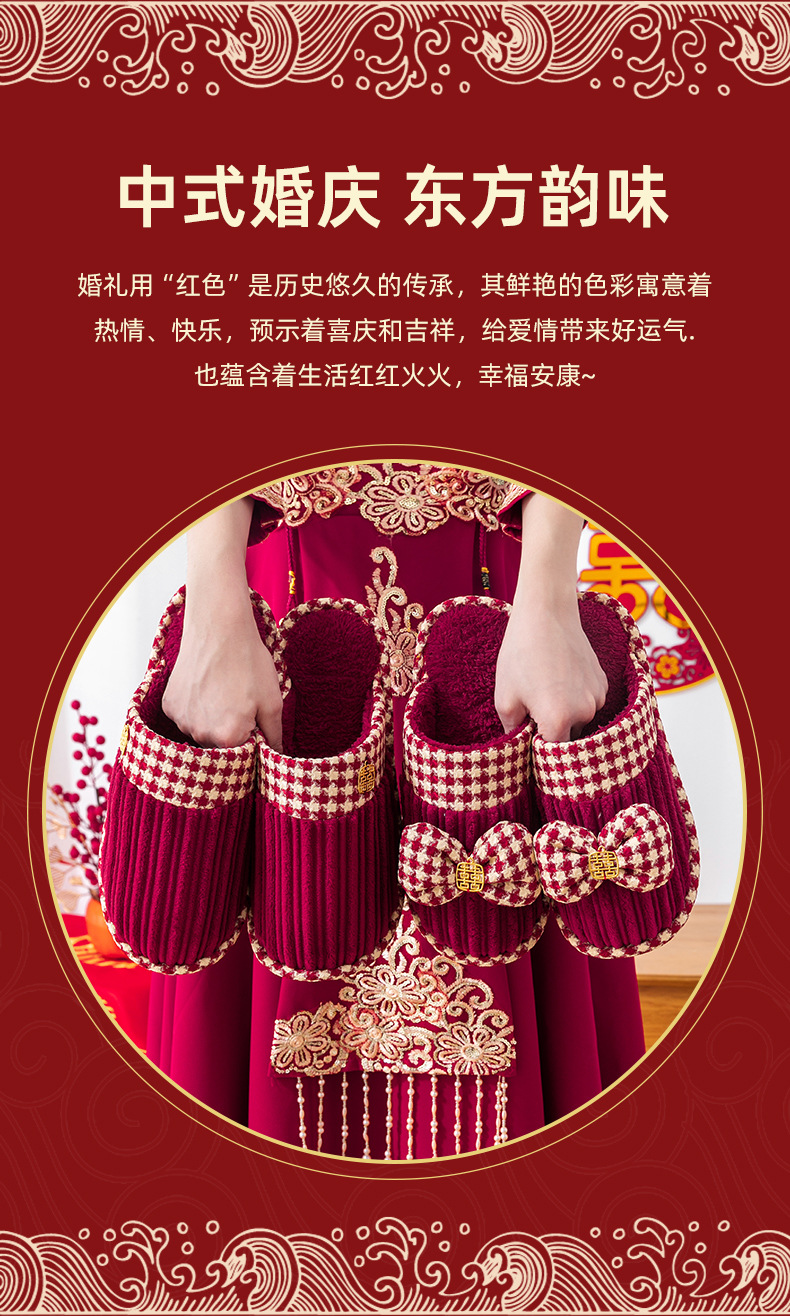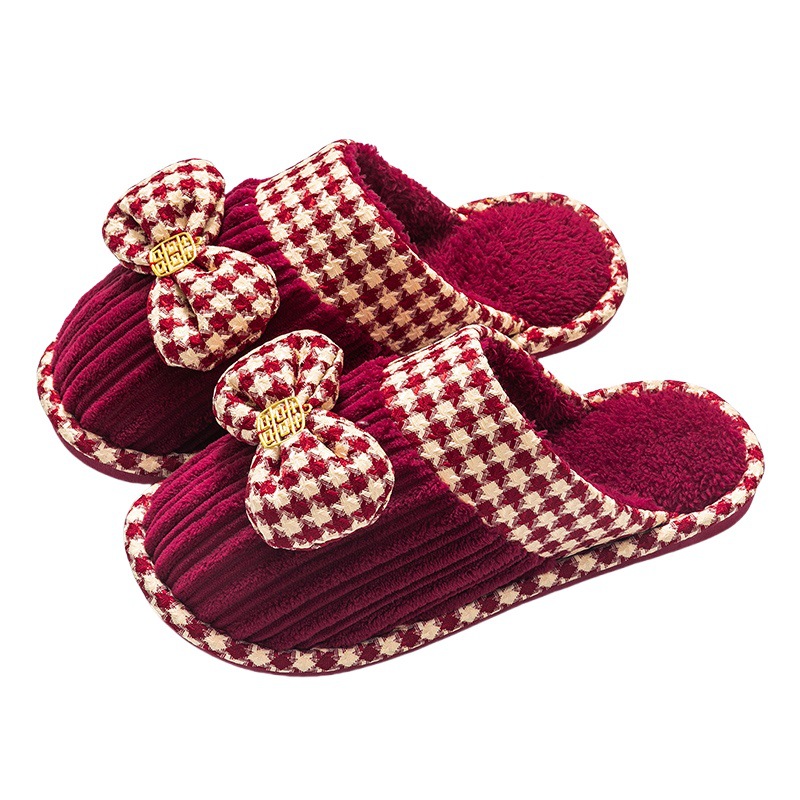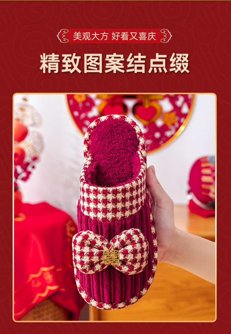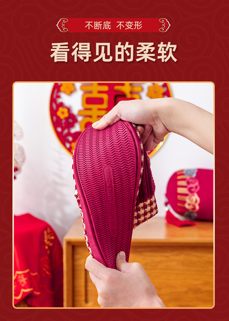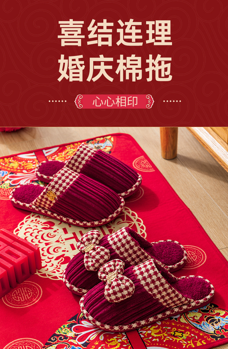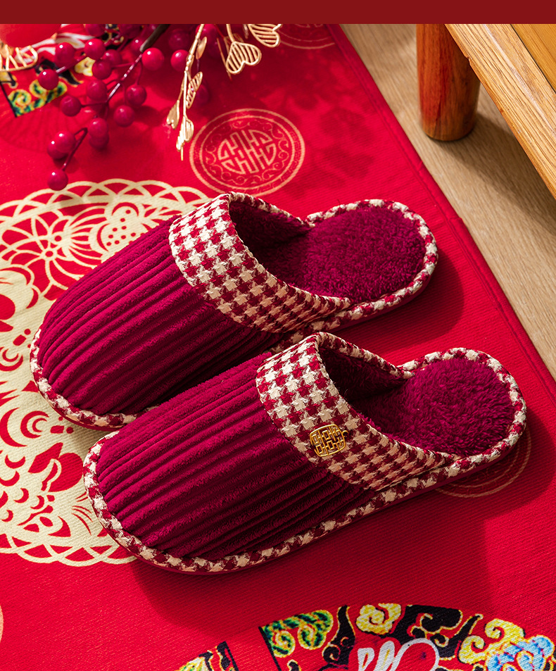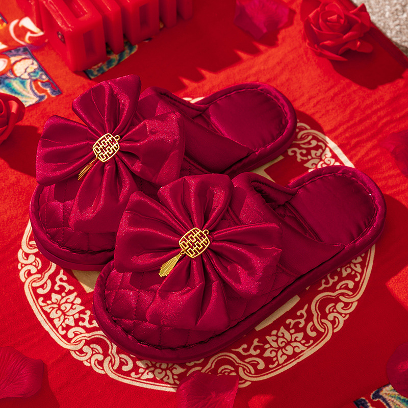 Свадебные тапочки женские праздничные красные пары хлопковых тапочек свадебные осенние и зимние дома