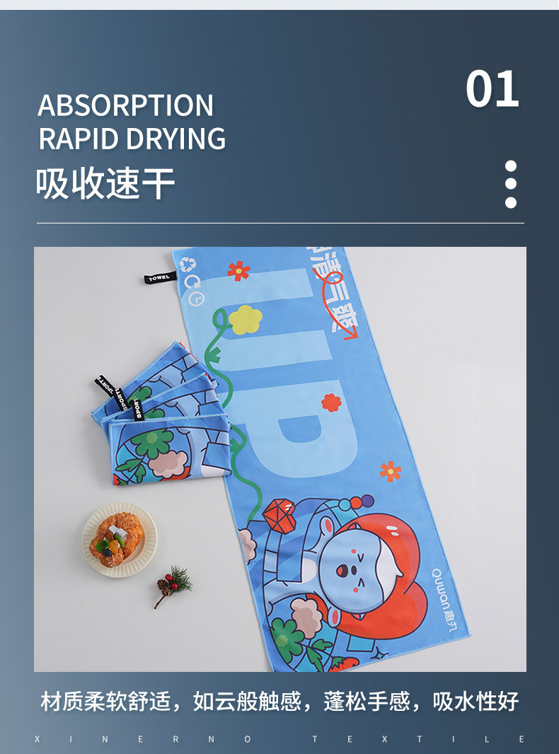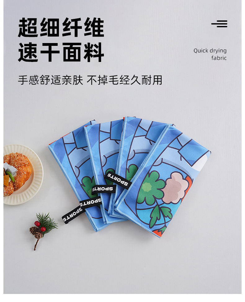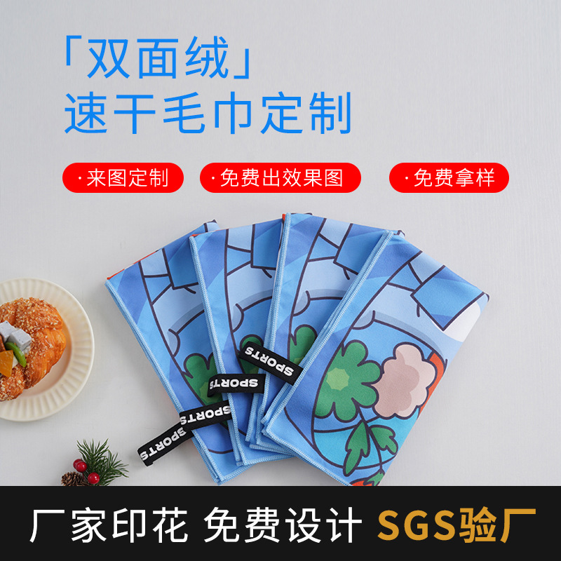 Двустороннее велюровое полотенце из микрофибры с цифровым переносом изображения, быстросохнущее, для фитнеса и спорта, с индивидуальным дизайном для трансграничной торговли