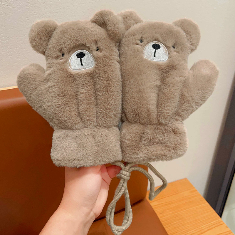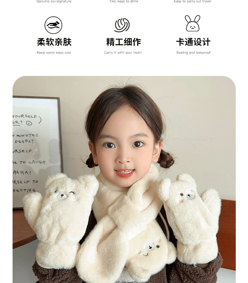 Детские перчатки плюшевый теплый шарф девушка милый мультфильм медвежонок мальчик зимний бархат утолщенный нагрудник