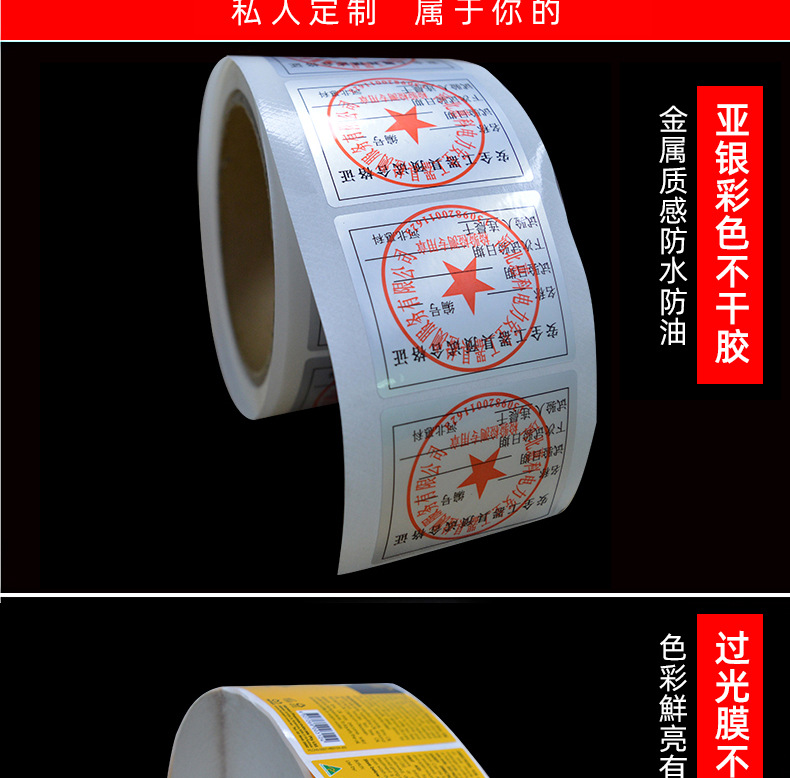 Настройте различные материалы, свяжитесь со службой поддержки клиентов; Прозрачный материал самоклеящийся; Процесс горячего тиснения самоклеящийся; Лазерная обработка самоклеящейся пленки; Матовый серебристый материал, самоклеящийся.; Пластиковый листовой материал самоклеящийся; Самоклеящаяся бумага с покрытием; Синтетическая бумага самоклеящаяся; Рулонные этикетки на заказ; Листовые этикетки по индивидуальному заказу