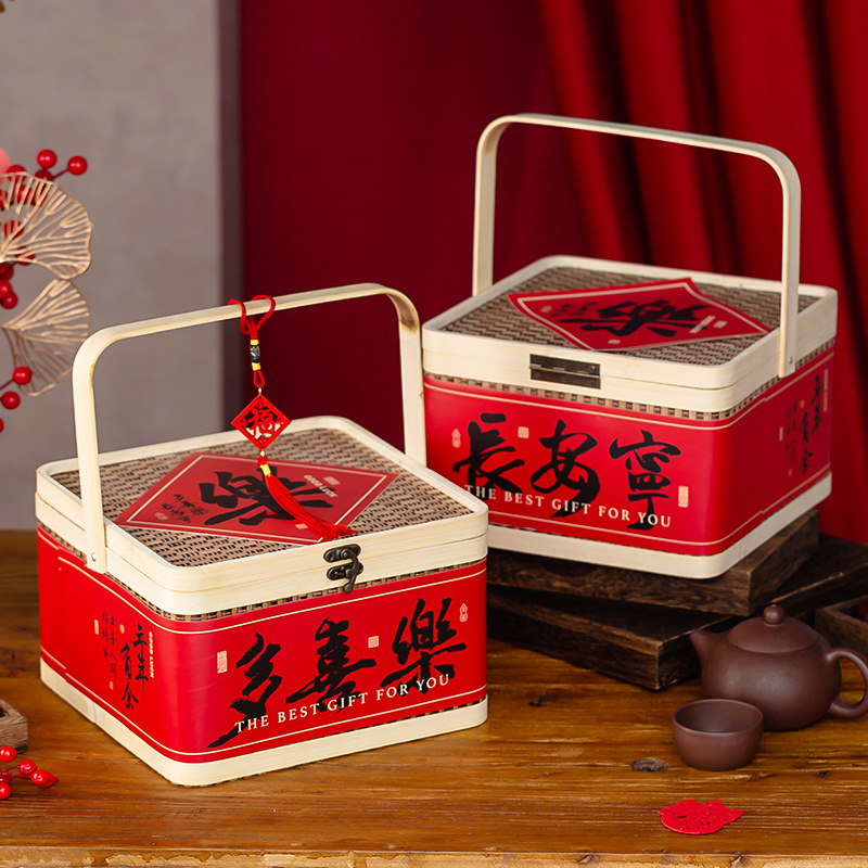 Подарочная коробка-корзина из бамбука для новогодних сладостей 2026 года, упаковка для печенья, новогодние товары, элитные кондитерские изделия, местные деликатесы, год Змеи, универсальная пустая коробка