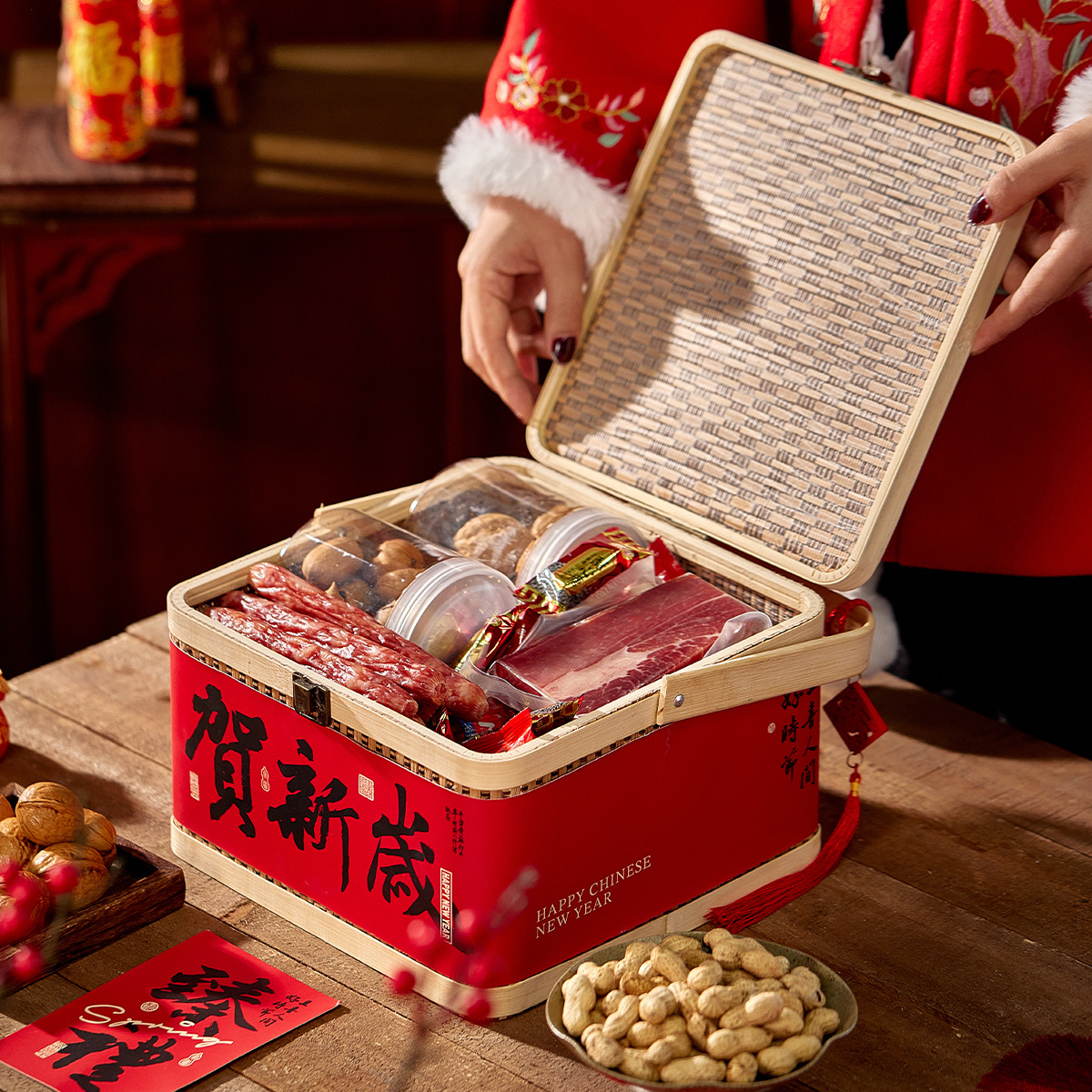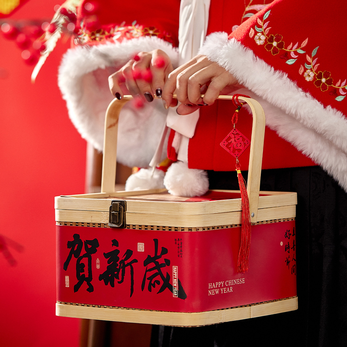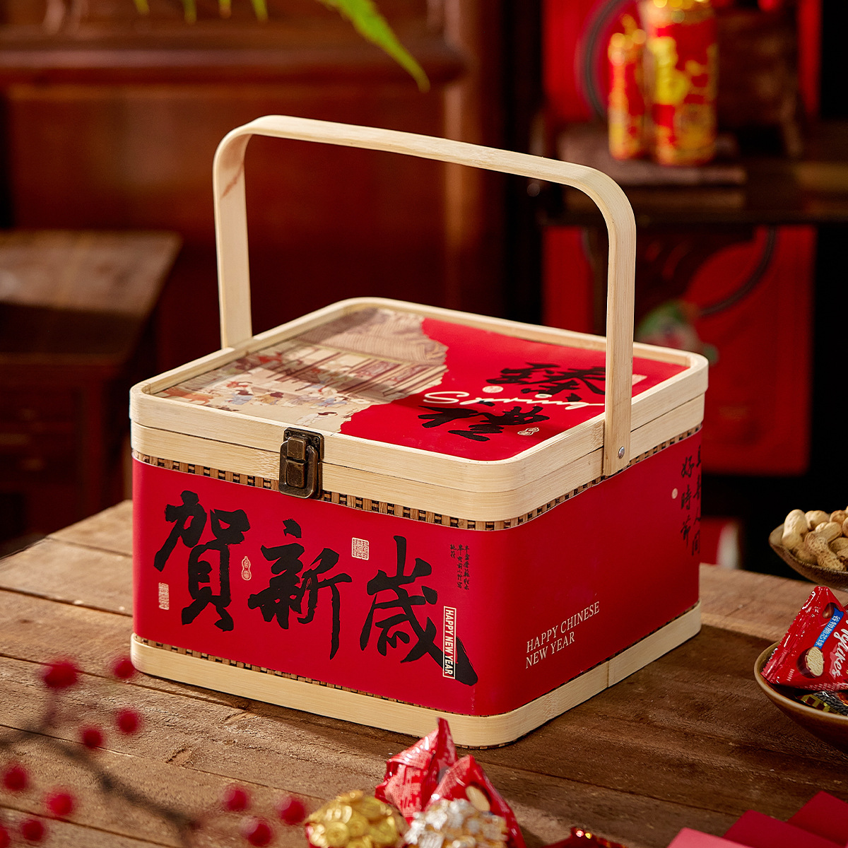 Счастливый; Бамбуковая корзина Zhenli с Новым годом