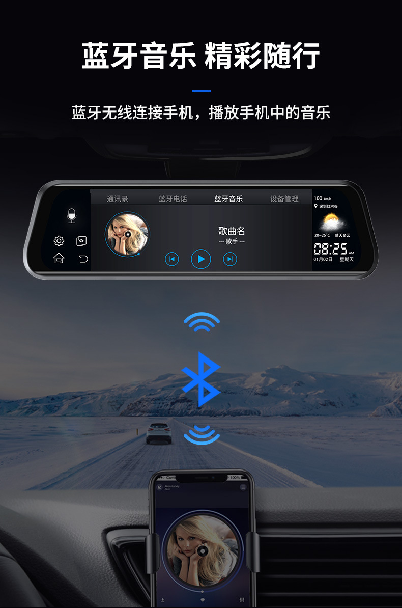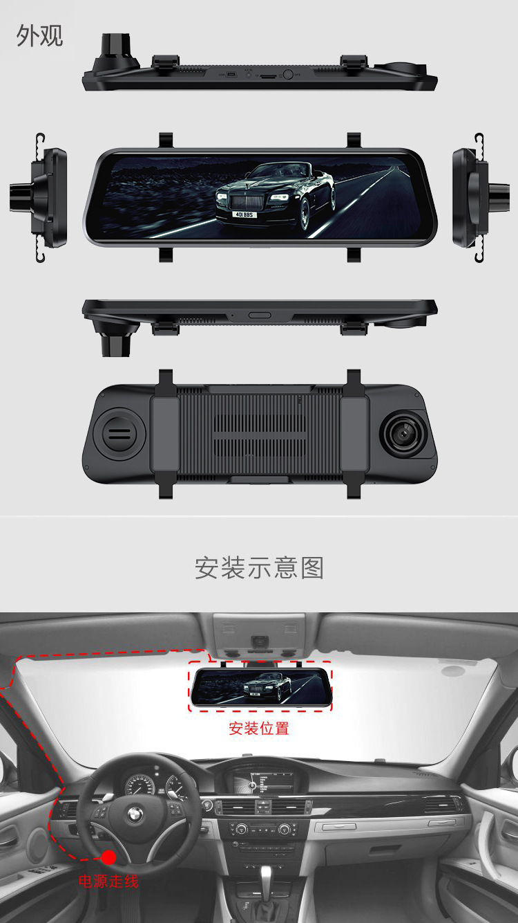 Трансграничный Android 4G сеть потокового зеркала заднего вида видеорегистратор 10-дюймовый полноэкранный 12 миллионов ночного видения высокой четкости
