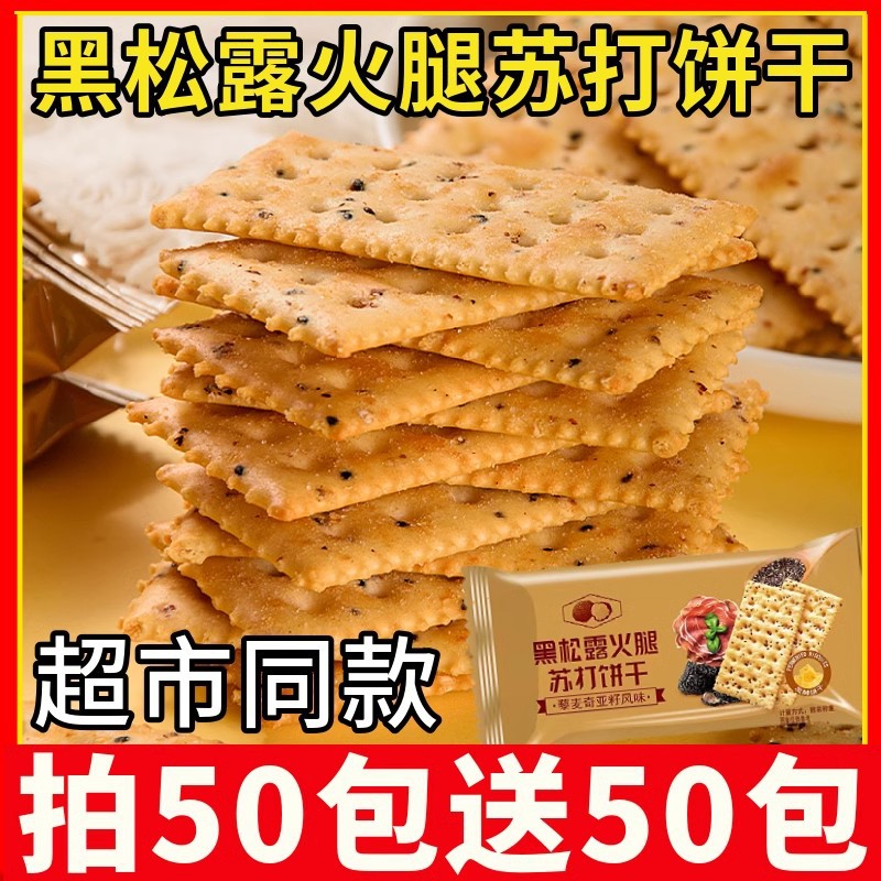 Черный трюфель с ветчиной сода печенье соленое и хрустящие закуски в супермаркете
