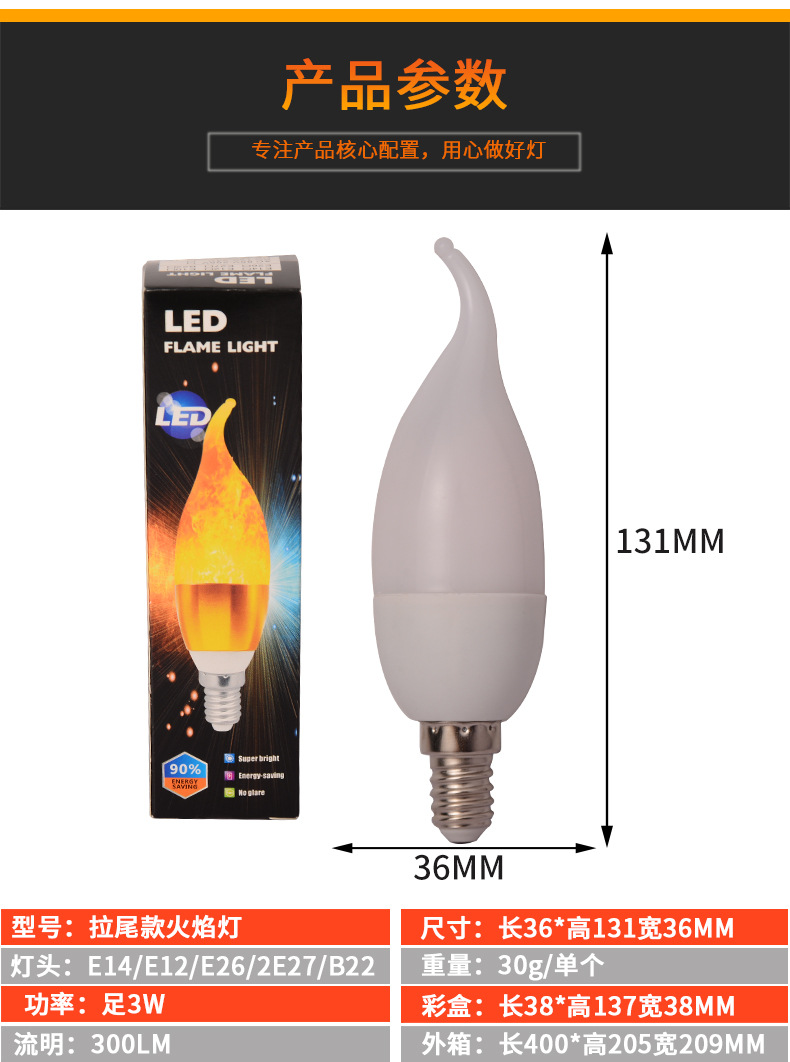 Доставка в тот же день, светодиодная лампа с пламенем, лампа-свеча, наконечник, лампа с пузырьковым пламенем, лампа с хвостовым пламенем, трансграничная лампа с пламенем