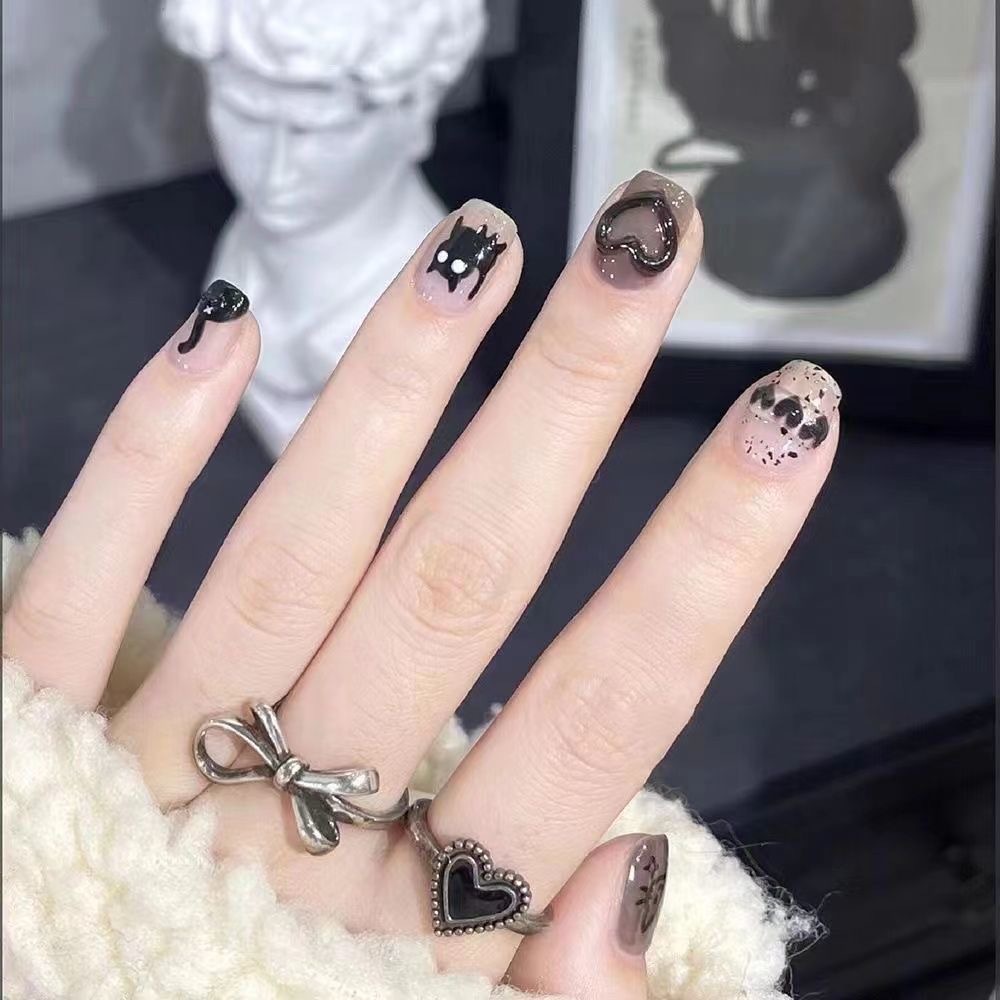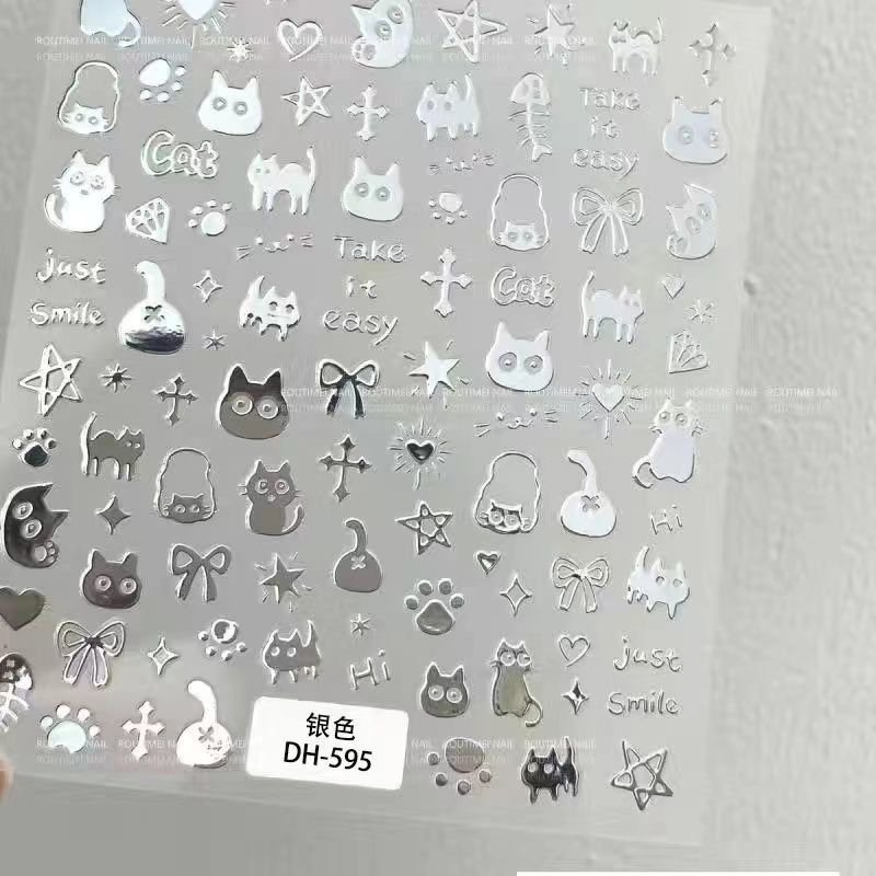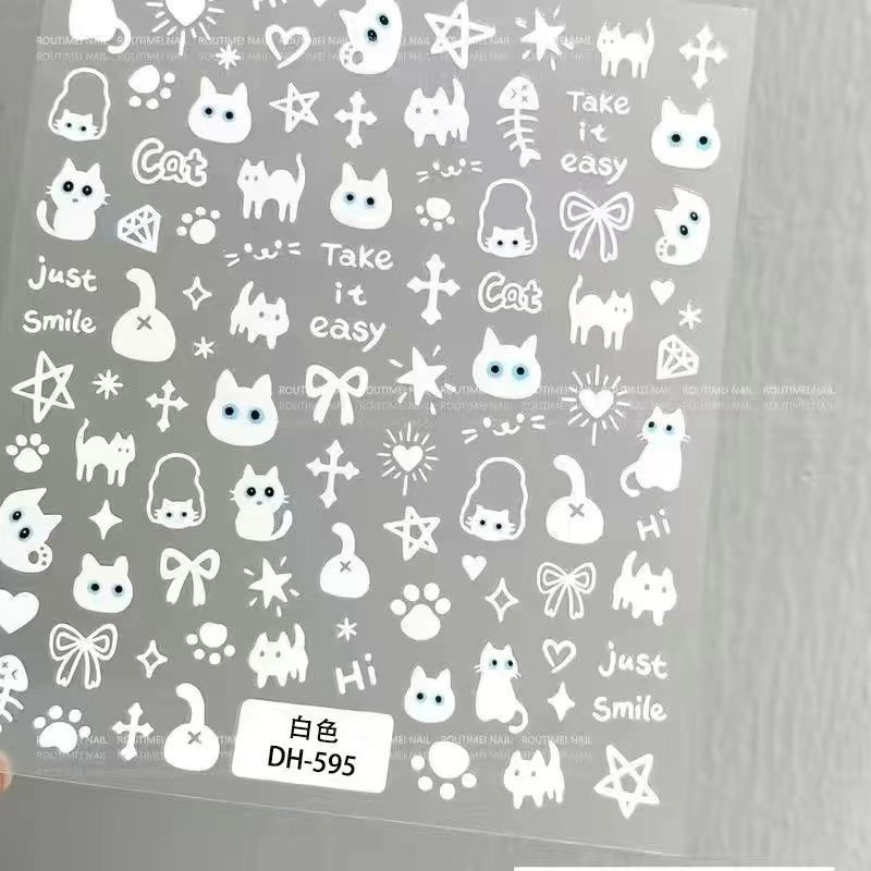 Модные милые котята, щенки, кролики, граффити, наклейки для ногтей, черно-белые наклейки для ногтей с изображением кота, мультяшного животного