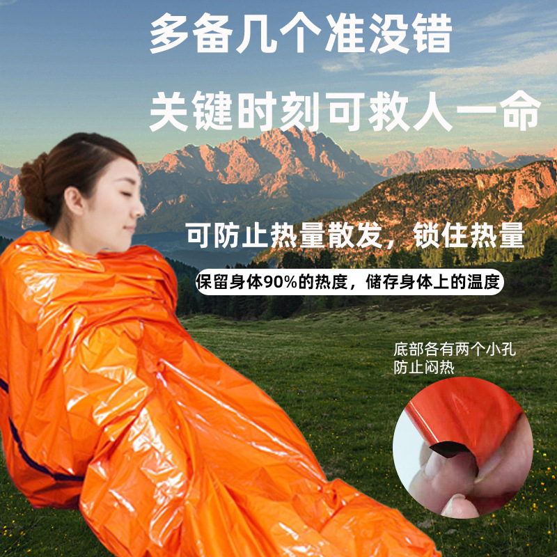 Для путешествий в дикой природе, аварийный спасательный термоизоляционный спальный мешок из полиэтиленовой алюминиевой пленки, отражающий портативный тент для самоспасения, непромокаемый