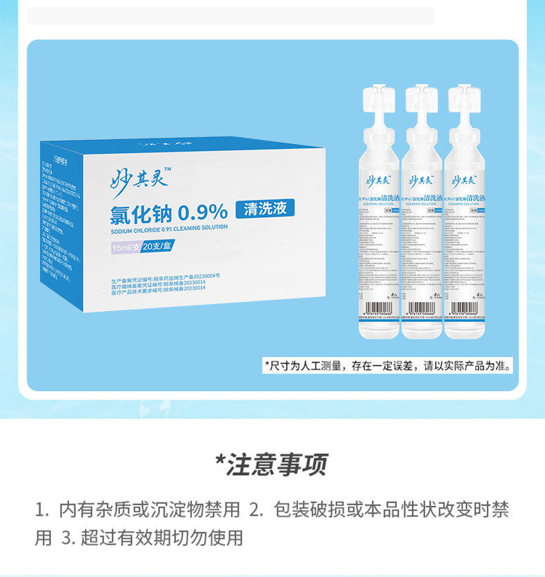 Физиологическая физиологическая солевая медицинская очистная жидкость для небольших ветвей для лица влажный компресс для вышивки хлорида натрия для мытья носа 15 мл