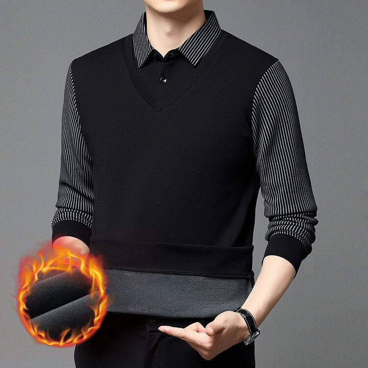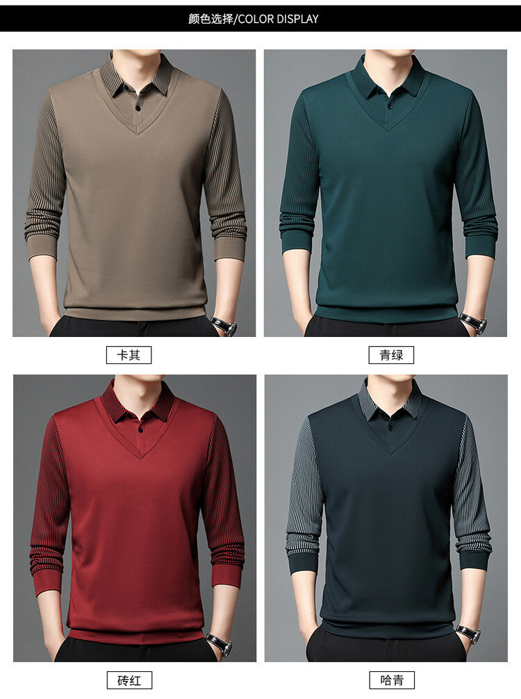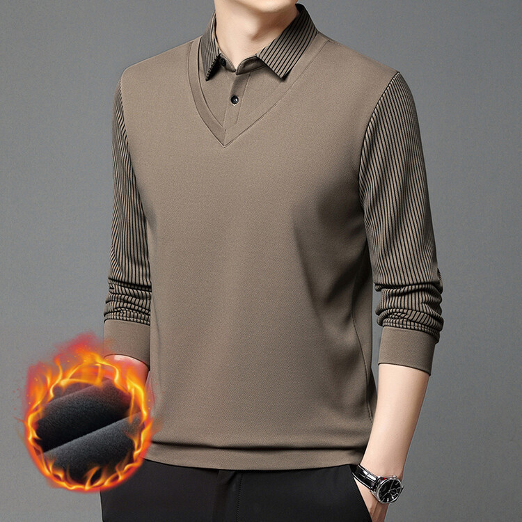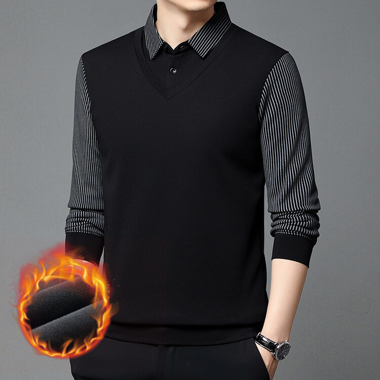 2024-е поколение волос оптовая зимняя мужская бархатная рубашка плюс топ повседневная дикая рубашка воротник поддельные две части мужской рубашки POLO
