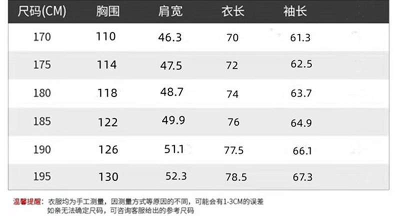 170/М【100-120】кг; 175/L【120-135】кг; 180/XL [135-150] фунтов; 185/2XL [150-165] фунтов; 190/3XL [165-180] фунтов; 195/4XL【180-200】кг