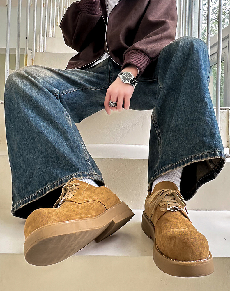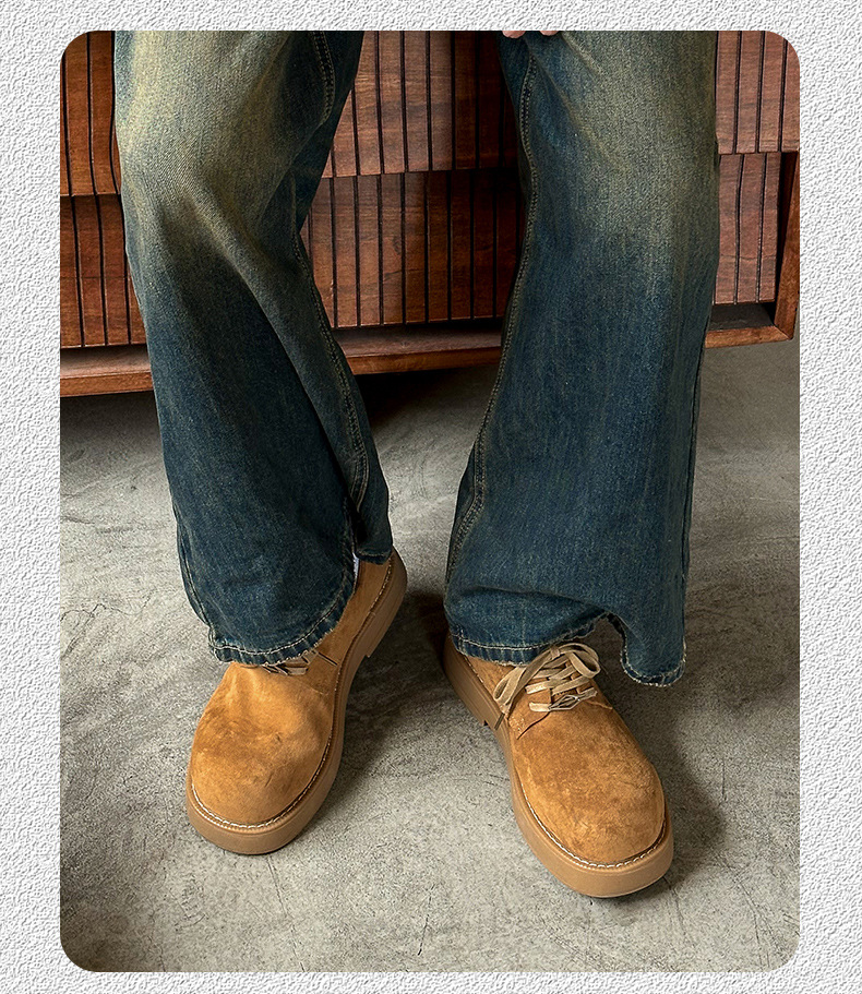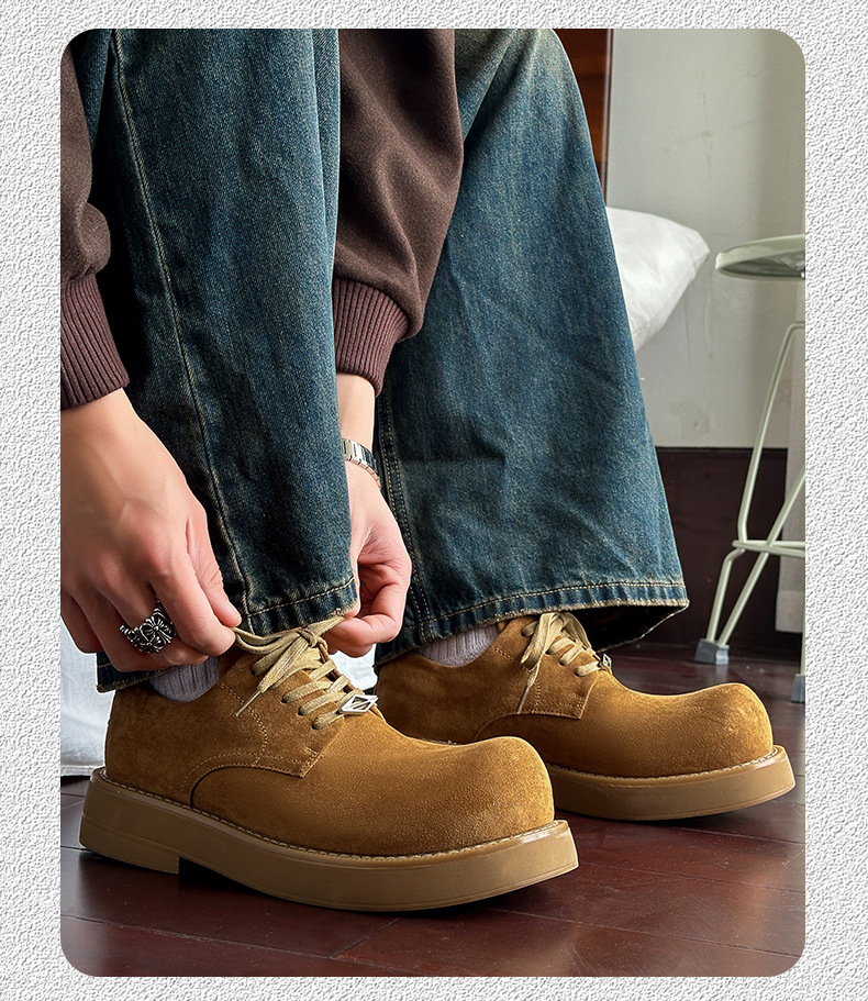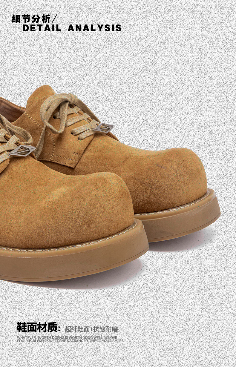 Обувь Дерби Мужские 2024 Осень Зима Новые ботинки Микки Голубка Низкая Толстая подошва Большие желтые ботинки Круглые кожаные ботинки 288288