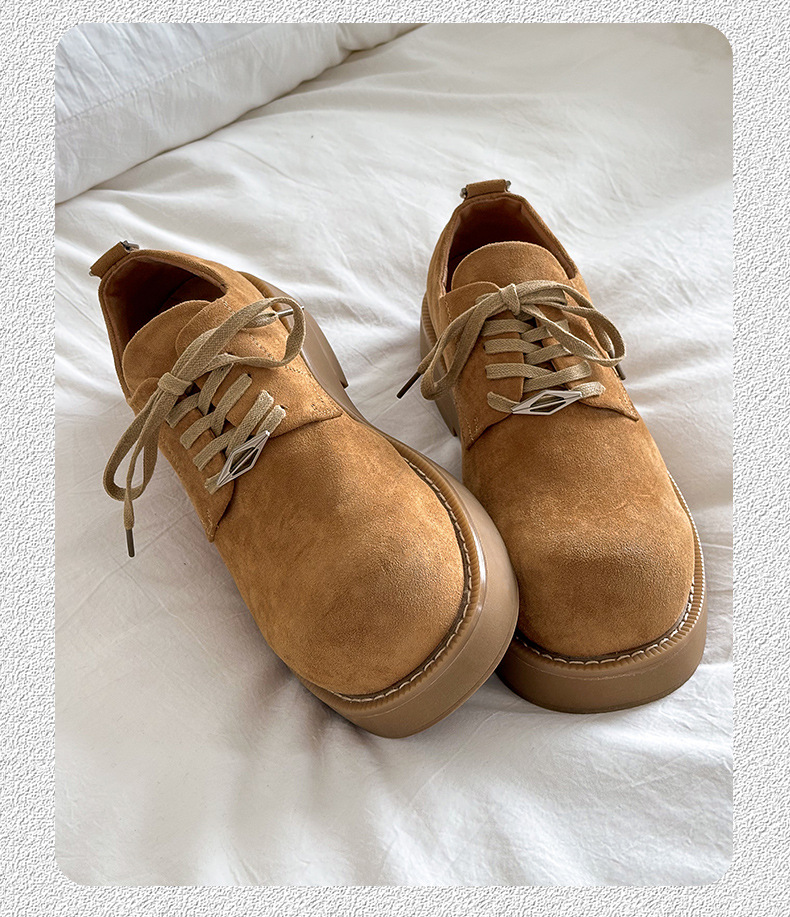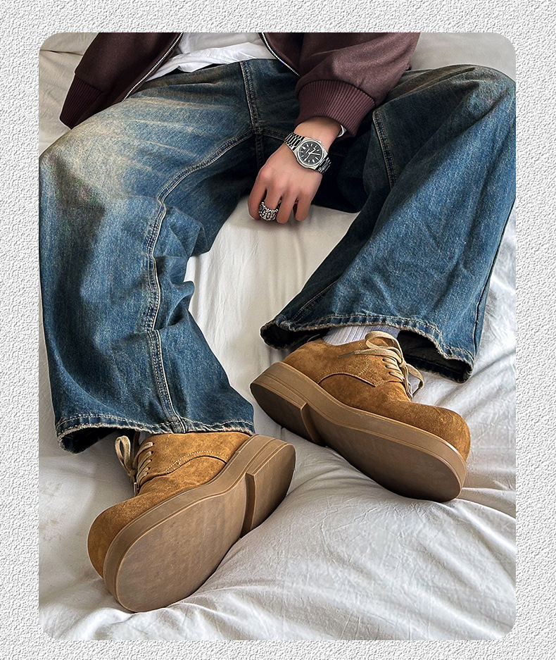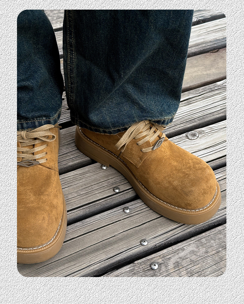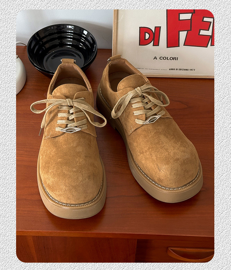 Обувь Дерби Мужские 2024 Осень Зима Новые ботинки Микки Голубка Низкая Толстая подошва Большие желтые ботинки Круглые кожаные ботинки 288288