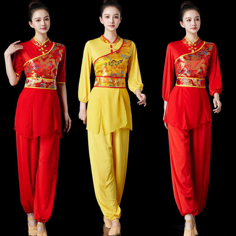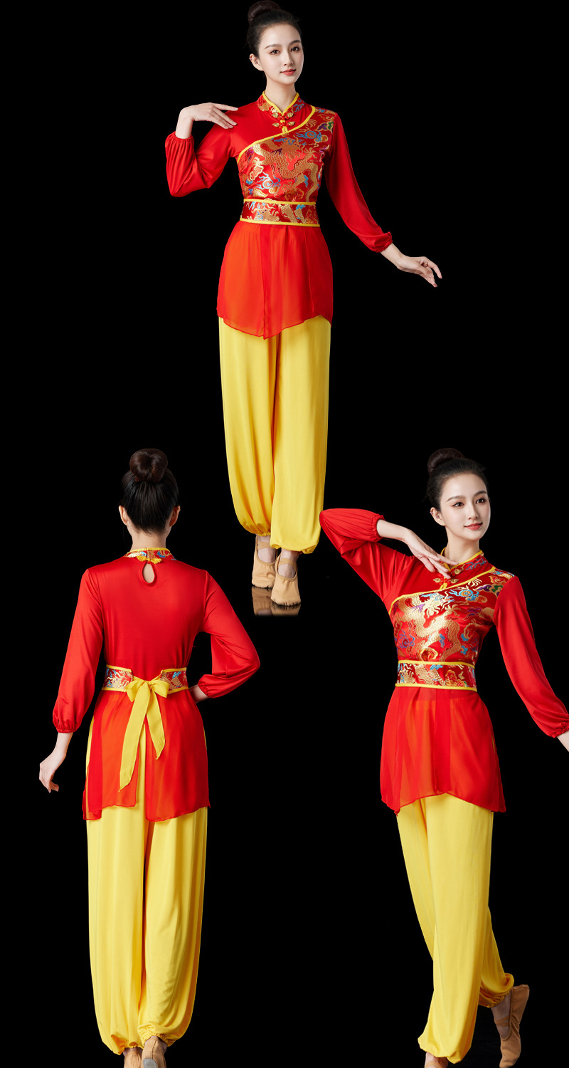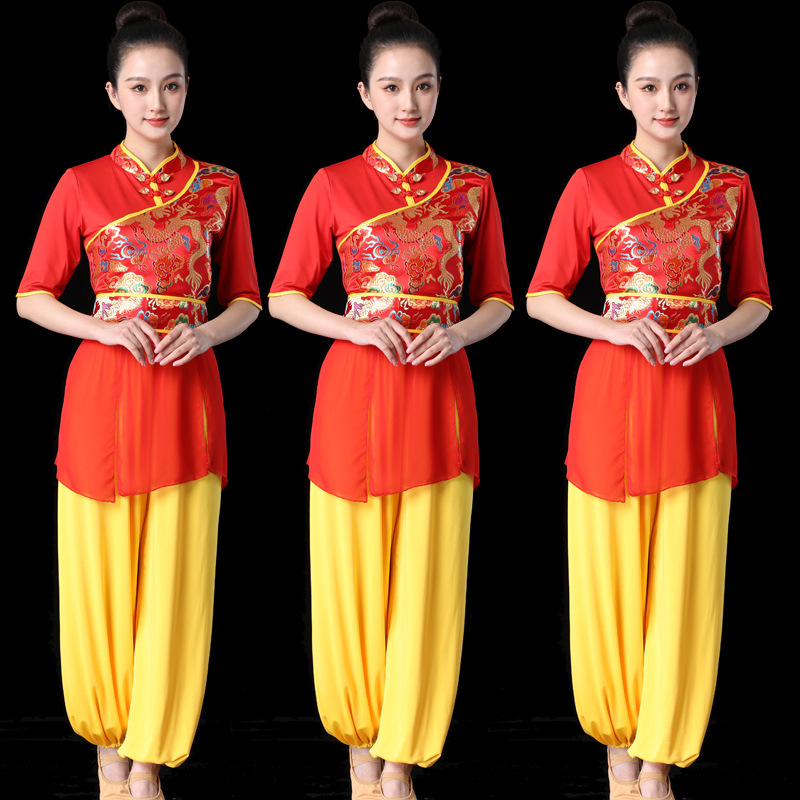 Барабанная одежда для выступления на барабанах Китайская танцевальная одежда в стиле современный фанатский танец престиж вдохновляет Yangge костюм для женщин 6068