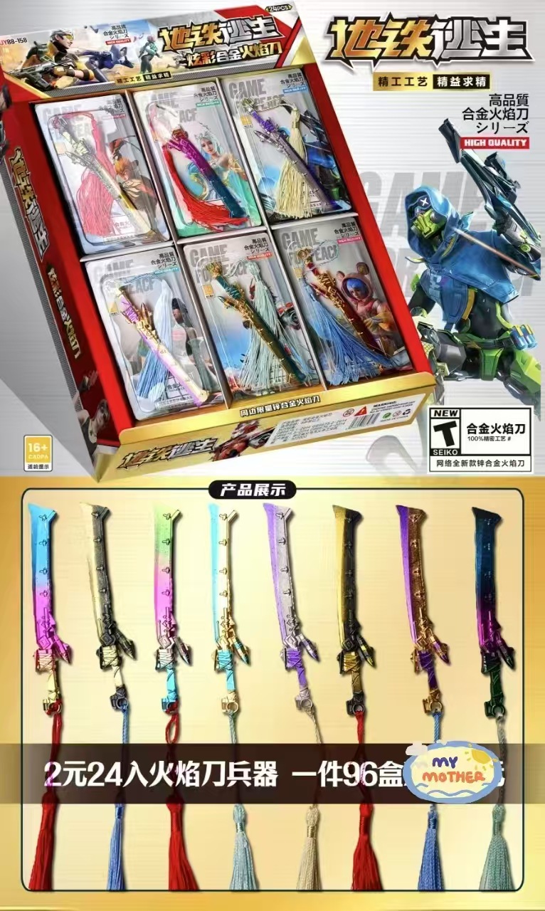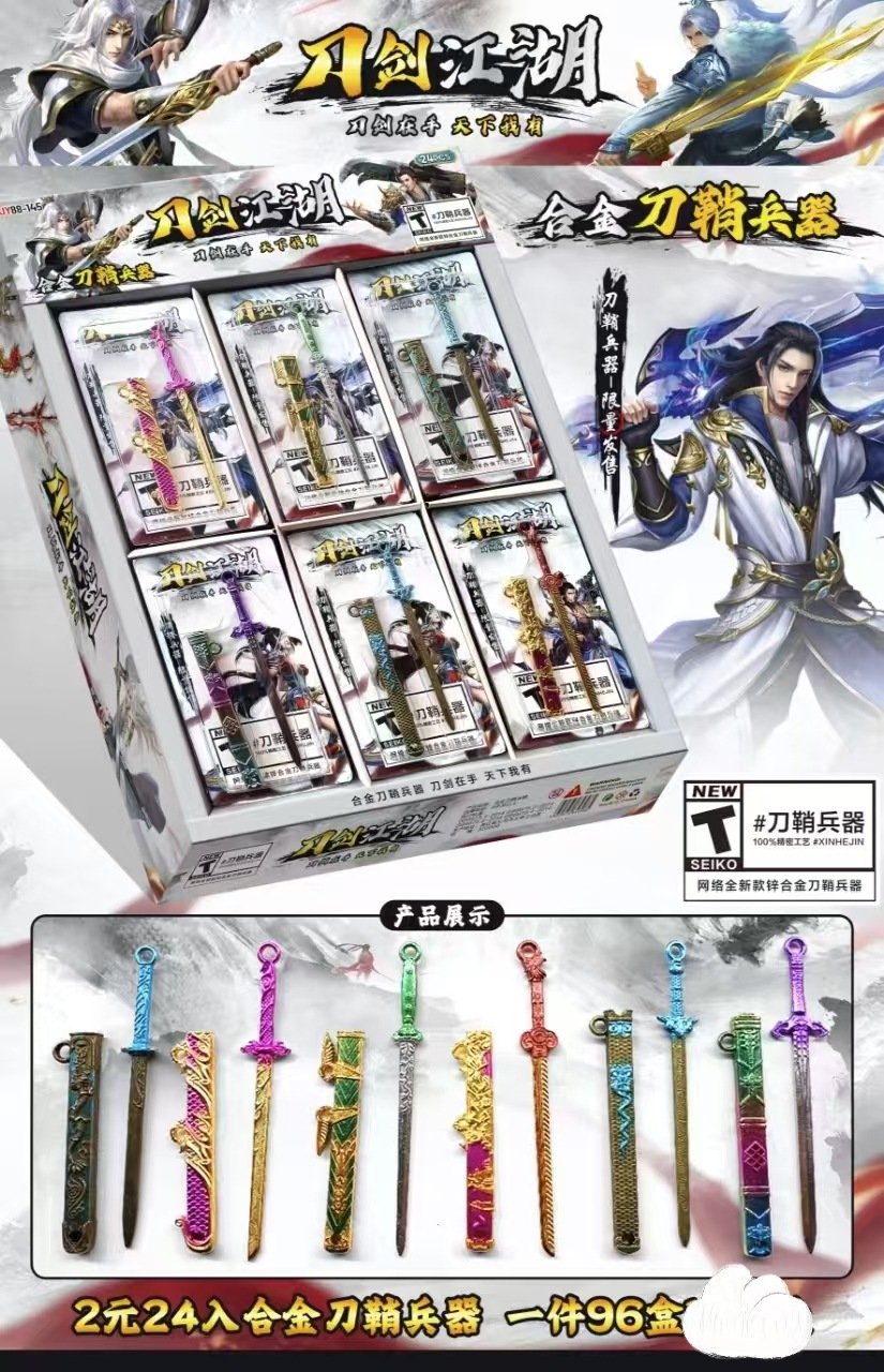 1 комплект из 24 оружейных предметов из сплава Genshin Impact (приобретите 24 комплекта с коробкой); 1 комплект из 24 мечей из сплава меча Цзянху (купите 24 комплекта с коробкой); 1 комплект из 24 ножей-бабочек с пятью когтями из сплава (приобретите 24 комплекта в коробке); 1 комплект из 24 нунчаков (приобретите 24 комплекта в коробке); 24 шт. ножей метро-пламени из сплава 1 комплект (при покупке 24 комплекта с коробкой); 1 комплект из 24 отчаянных сплавов для контратаки (приобрести 24 комплекта с коробкой); 24 шт. сплава Нежа 1 комплект (при покупке 24 комплекта с коробкой); 1 комплект из 24 ножей из сплава Dark Night Flame (при покупке 24 комплекта в коробке); 24 шт. Midnight Genshin Alloy 1 комплект (при покупке 24 комплекта в коробке); 1 комплект из 24 предметов стимулирующего боевого сплава (при покупке 24 комплекта в коробке); 24 шт. набора Restarting the Future Alloy 1 (при покупке 24 набора в коробке); 24 золотых пистолета-дракона с кукольным сплавом, 1 комплект (при покупке 24 комплекта в коробке); 1 комплект из 24 предметов из беспрецедентного элитного сплава (при покупке 24 комплекта в коробке); 24 предмета оружия из сплава боевых искусств 1 карта (купите 24 предмета с демонстрационной коробкой)