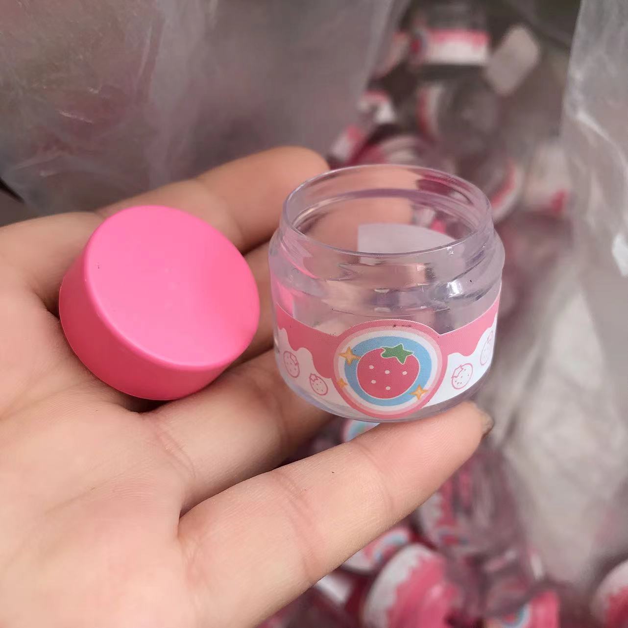 Подлинные сыпучие клубничные банки сцены