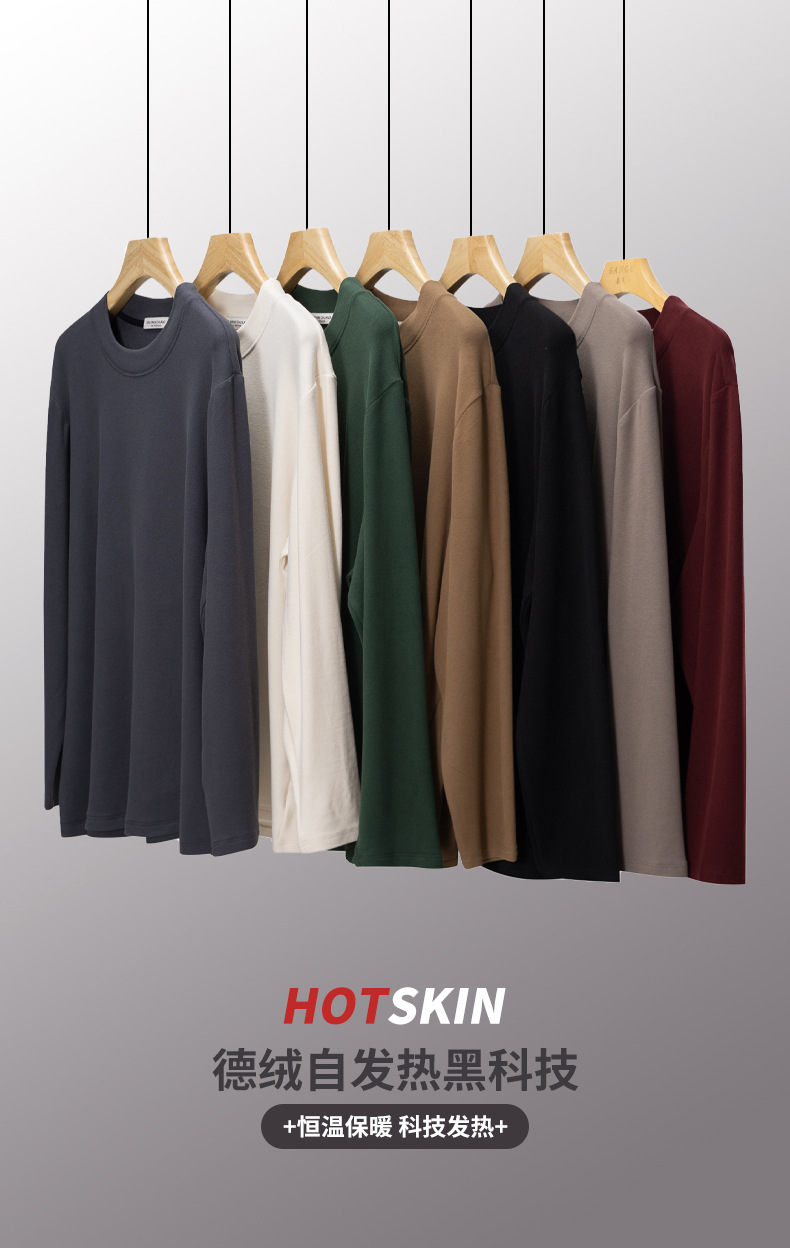 Мужская утепленная рубашка с длинным рукавом из немецкого вельвета, двусторонняя, однотонная, универсальная, с круглым вырезом, для поддержания постоянной температуры, теплая зимняя базовая одежда для мужчин больших размеров