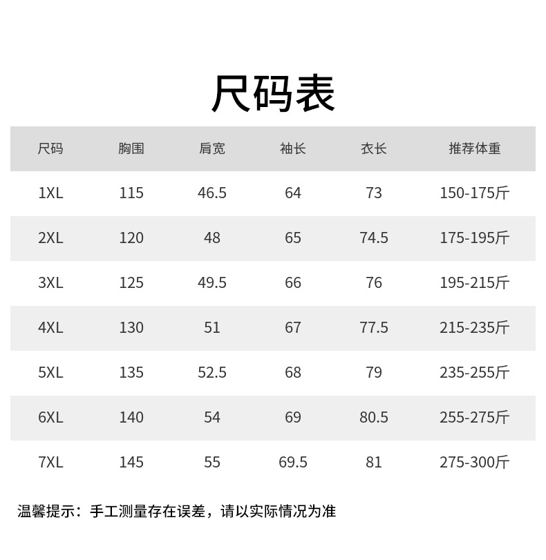 1XL< 87.5kg; 2XL< 97.5kg; 3XL< 107.5kg; 4XL< 117.5kg; 5XL< 127.5kg; 6XL< 137.5kg; 7XL< 150kg