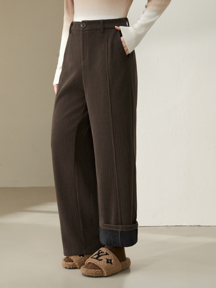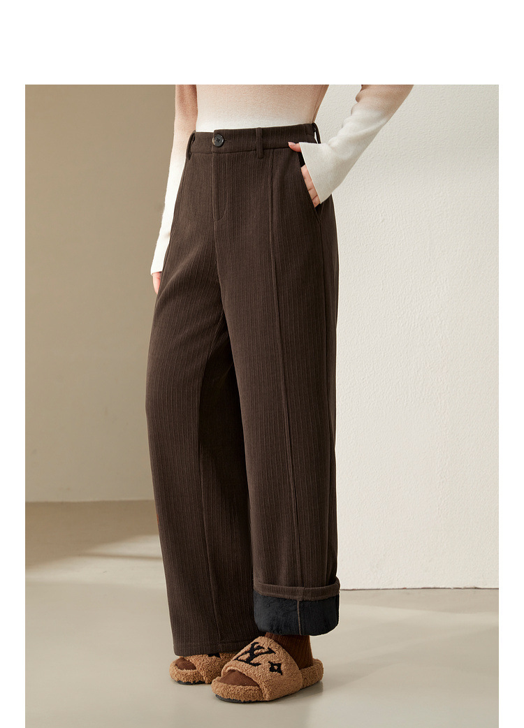 Сплейное шоу большой размер женской моды индивидуальность вертикальный рисунок тонкая теплая плюс флисовые брюки толстый mm2024 зимний новый стиль