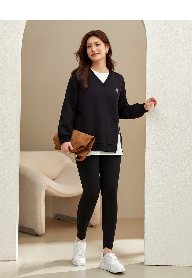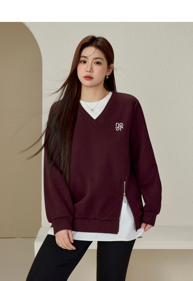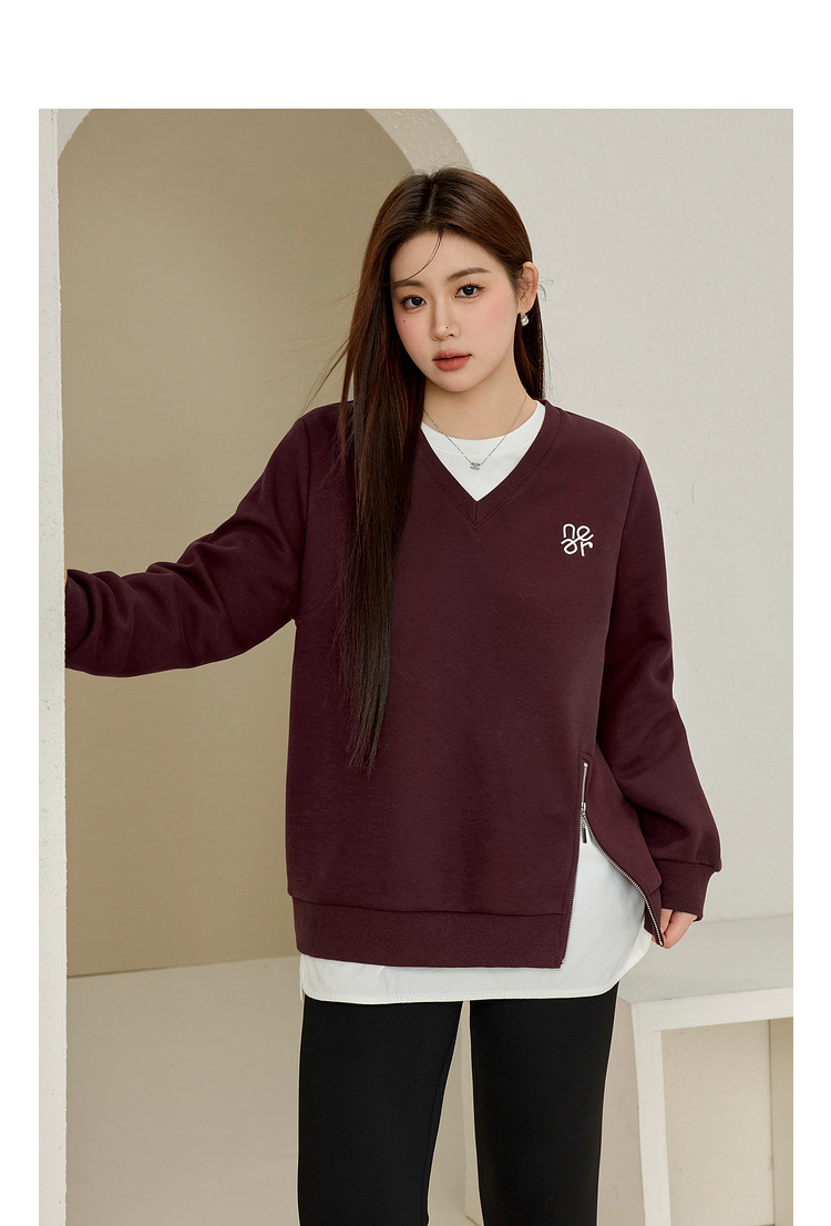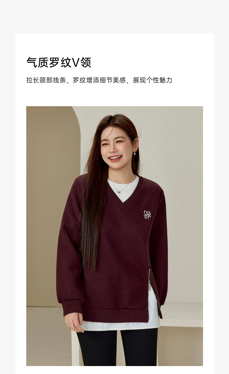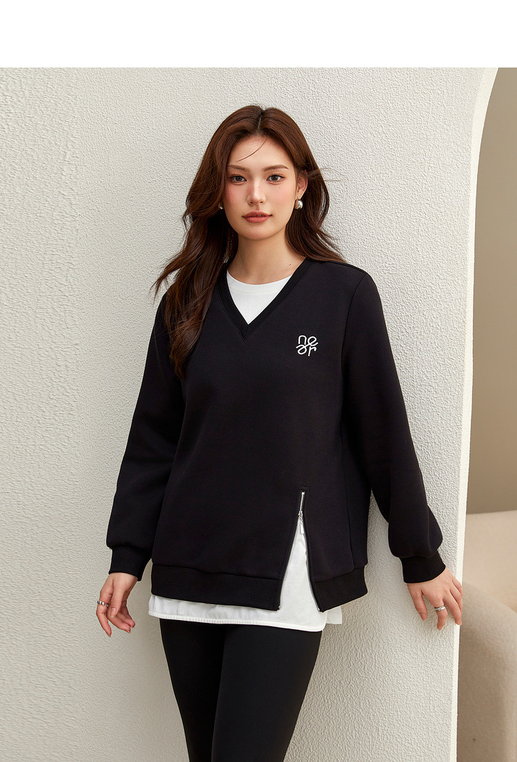 Стройное шоу большого размера женской одежды с молнией с открытым подолом нишевые дикие V-образный свитера толстый мм зимний новый
