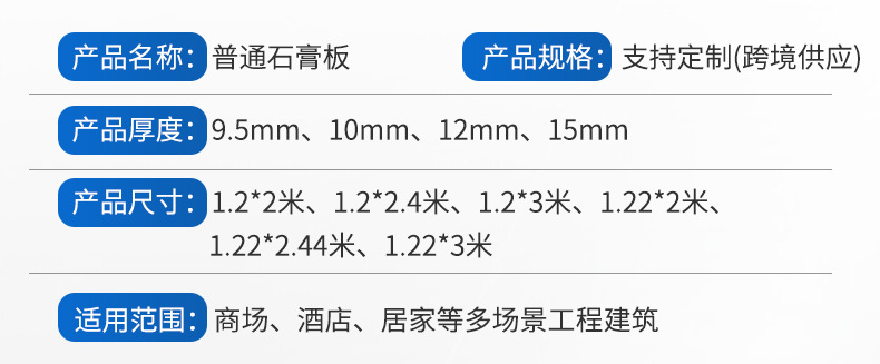 1.2*2m; 1.2*2.4m; 1.2*3m; 1.22*2m; 1.22*2.44m; 1.22*3m