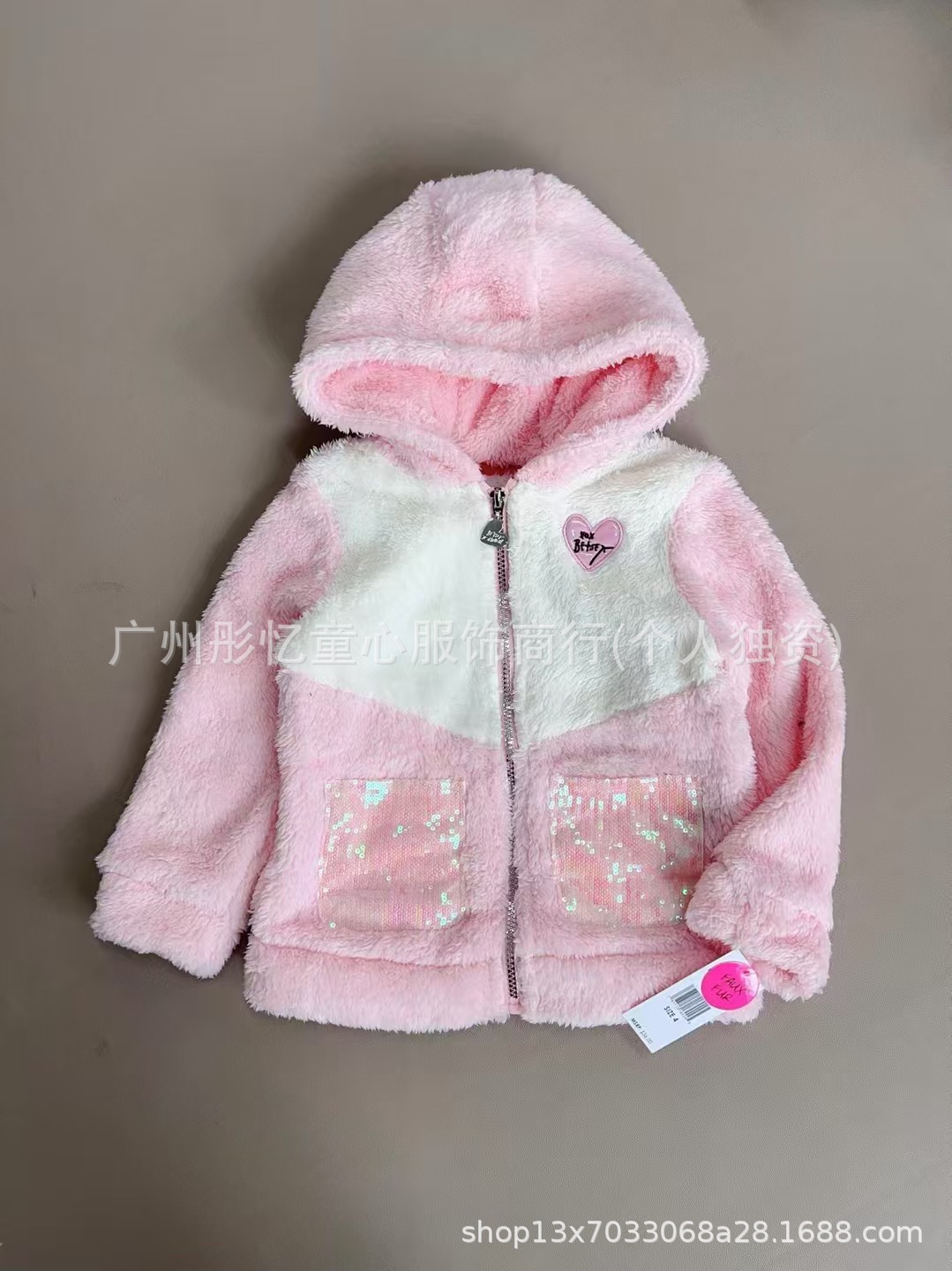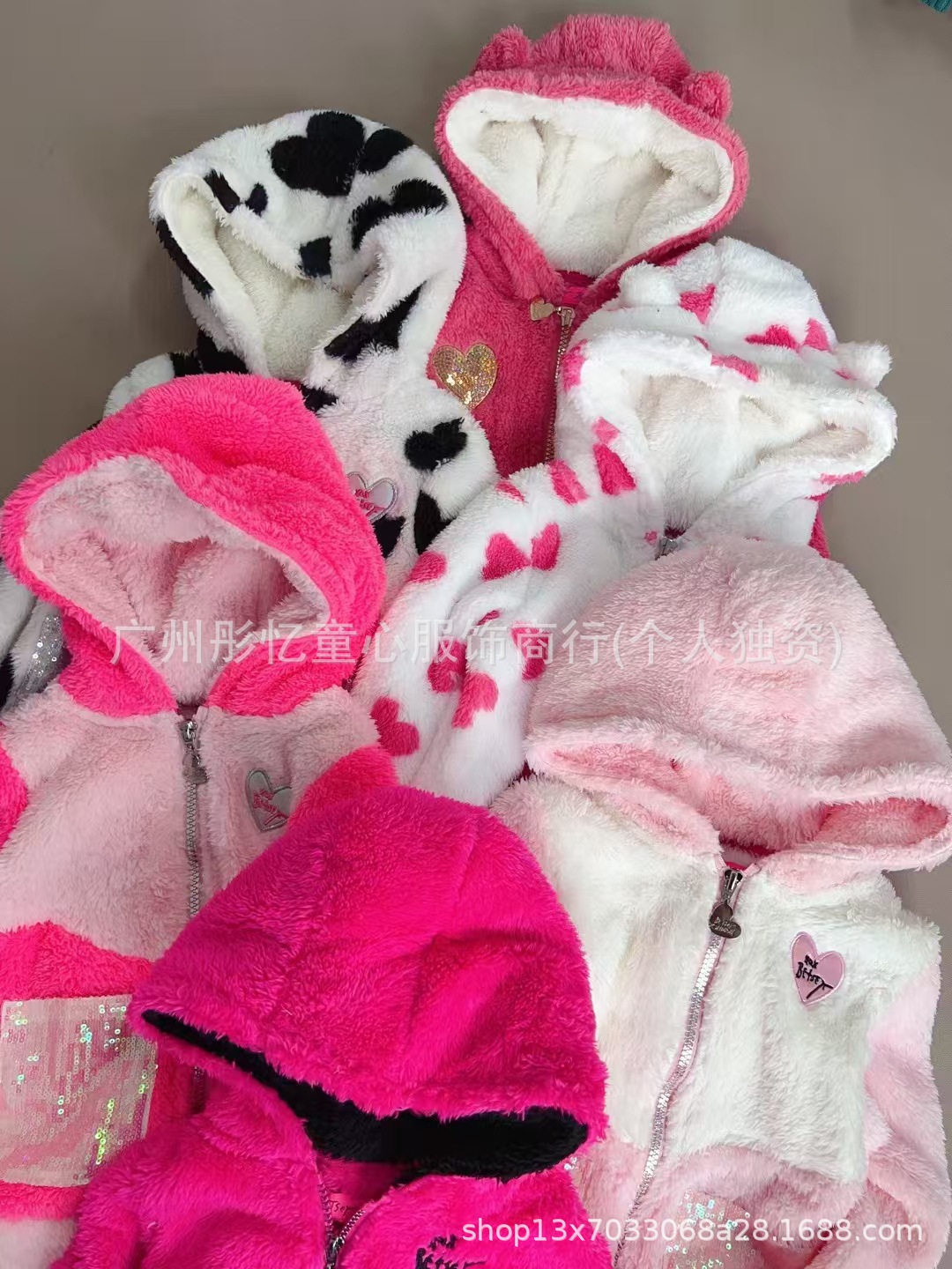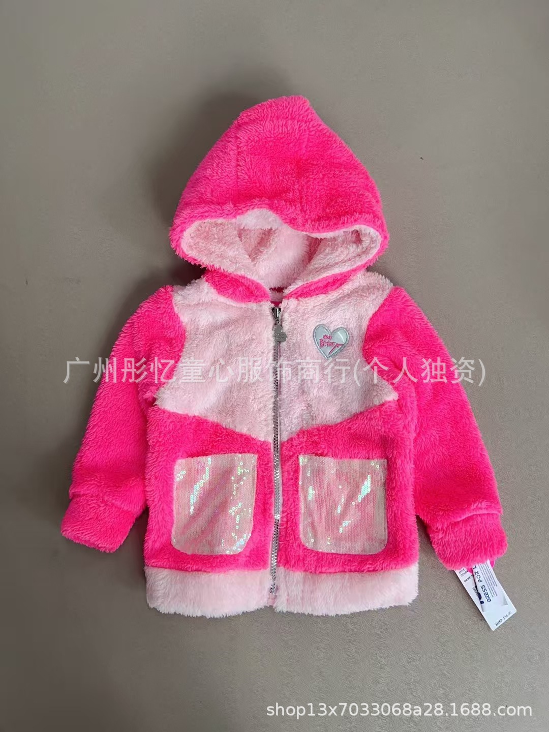 Plush velvet girl zipper coat, export the original single, a brand, the basic tag is very soft very thick, double plush hat, 2-8 years old, 50 pieces from the batch, there are 350 or so