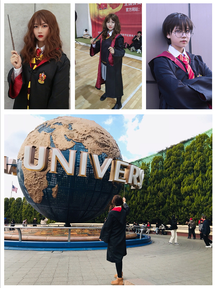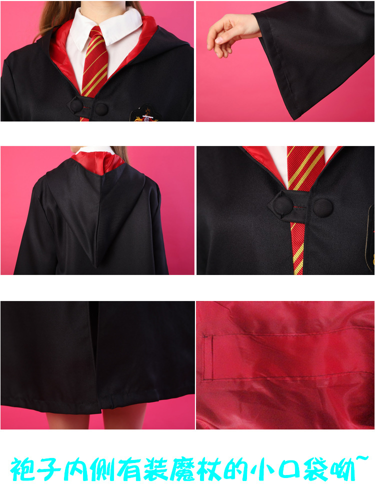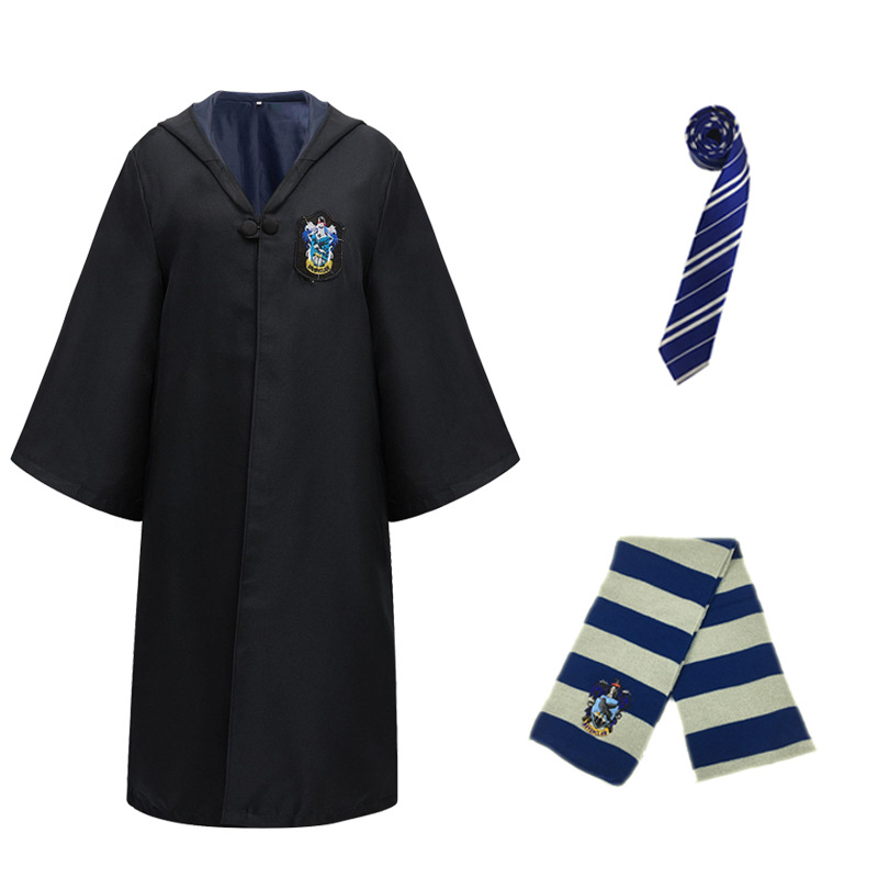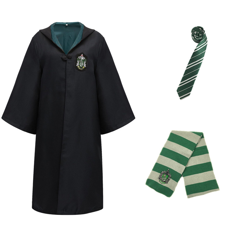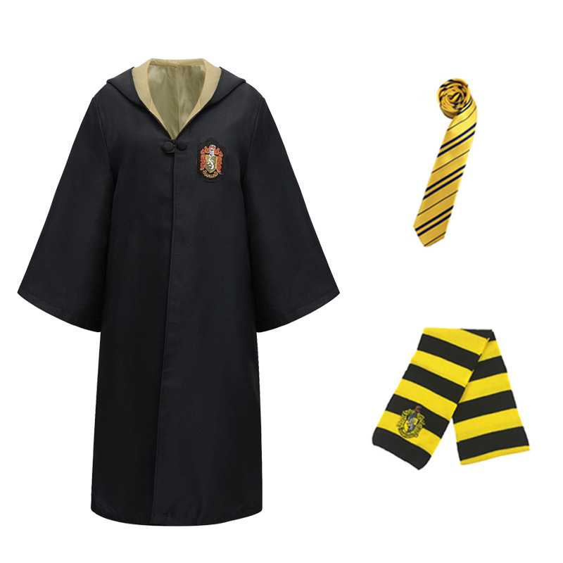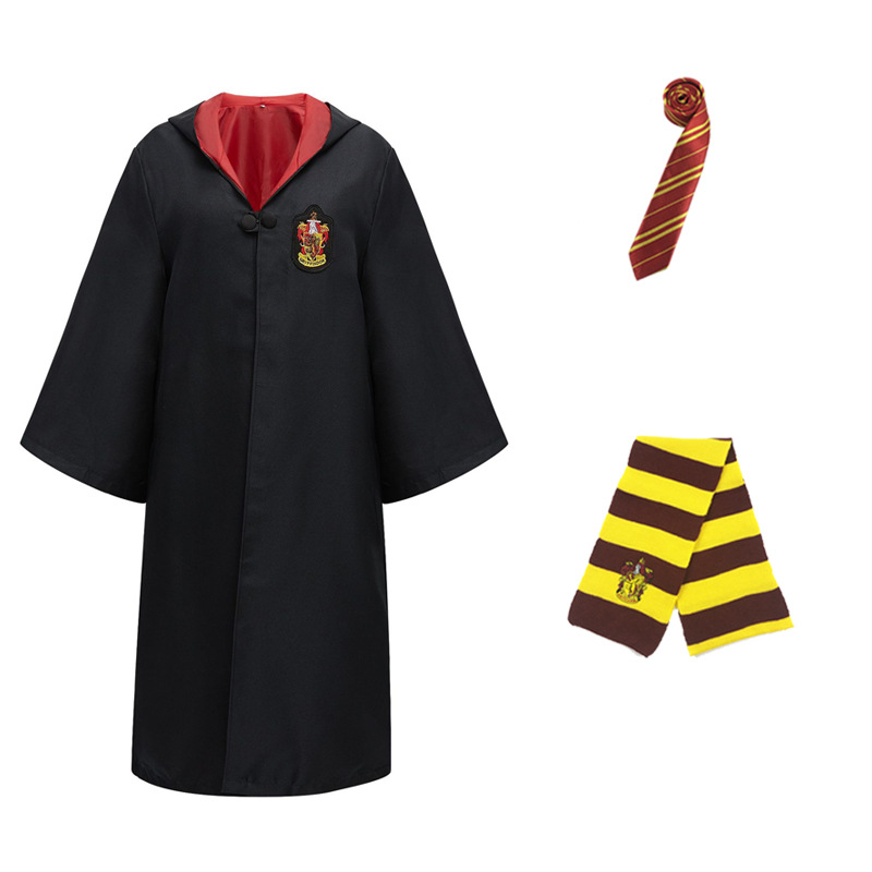 Красный халат Суда Льва; Зеленый халат Snake Yard; Синий халат Eagle Yard; Желтый халат Баджера Ярда; Красный плащ + галстук; Зеленый плащ + галстук; Синий плащ + галстук; Желтый плащ + галстук; Красный плащ + галстук + шарф; Зеленый плащ + галстук + шарф; Синий плащ + галстук + шарф; Желтый плащ + галстук + шарф; Красный плащ + галстук + шарф + очки + палочка; Зеленый плащ + галстук + шарф + очки + палочка; Синий плащ + галстук + шарф + очки + палочка; Желтый плащ + галстук + шарф + очки + палочка; Красный набор из семи предметов.; Зеленый набор из семи предметов.; Синий набор из семи предметов.; Желтый набор из семи предметов.; Красный галстук (примечание для других цветов); Красный шарф (примечания к остальным цветам); очки; волшебная палочка; шляпа; рубашка; юбка; брюки; Красный свитер (примечания к остальным цветам); Ожерелье Золотой Снитч (случайный цвет); Ожерелье Смертных Ключей (случайный цвет); Ожерелье-преобразователь времени (случайный цвет); черный плащ