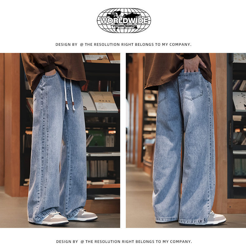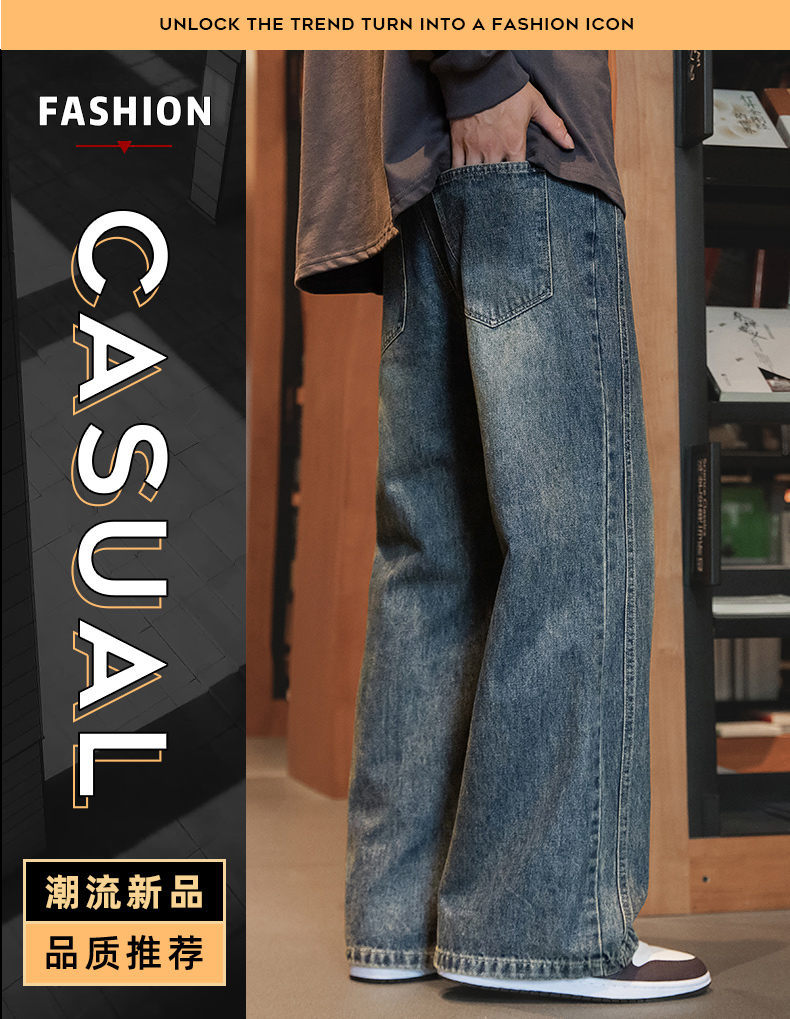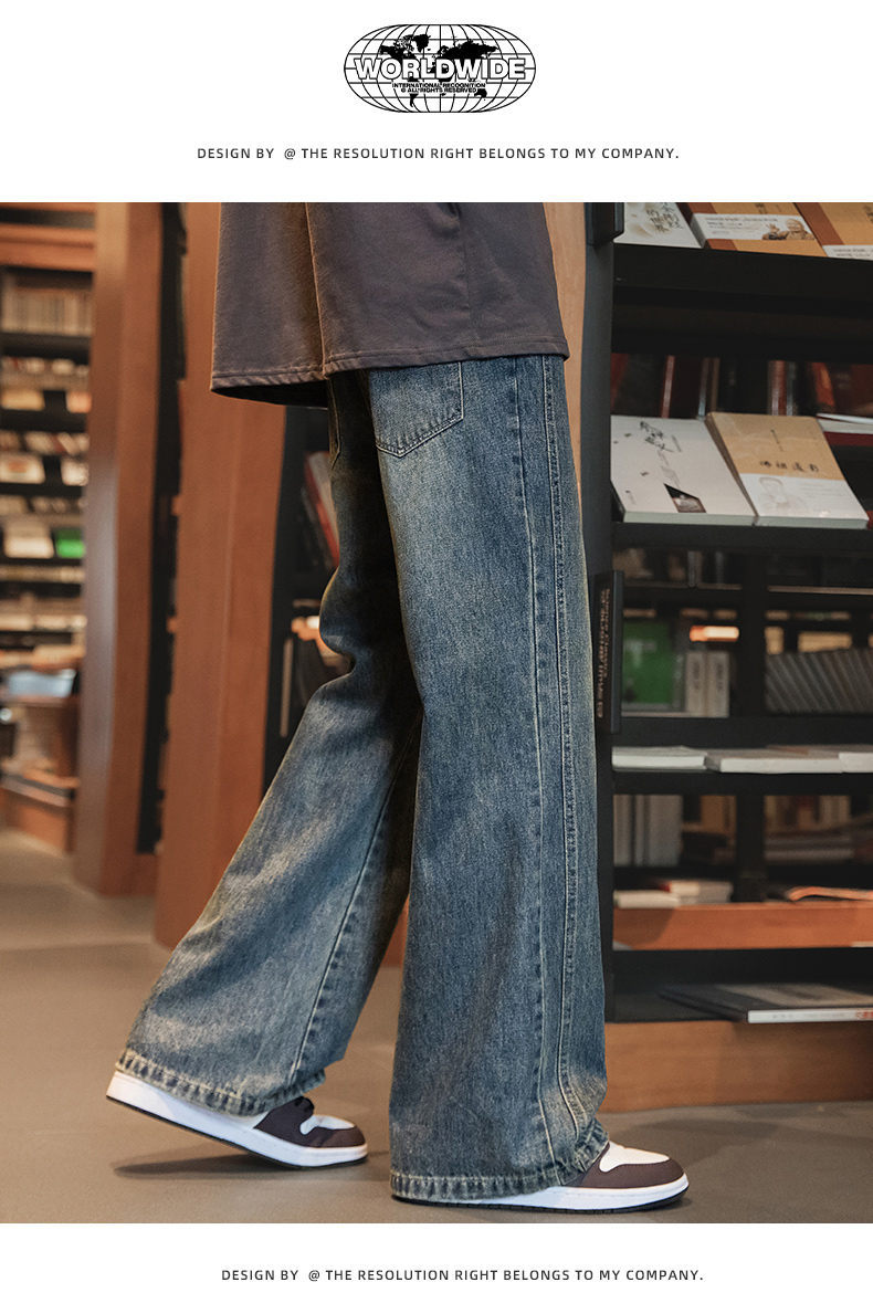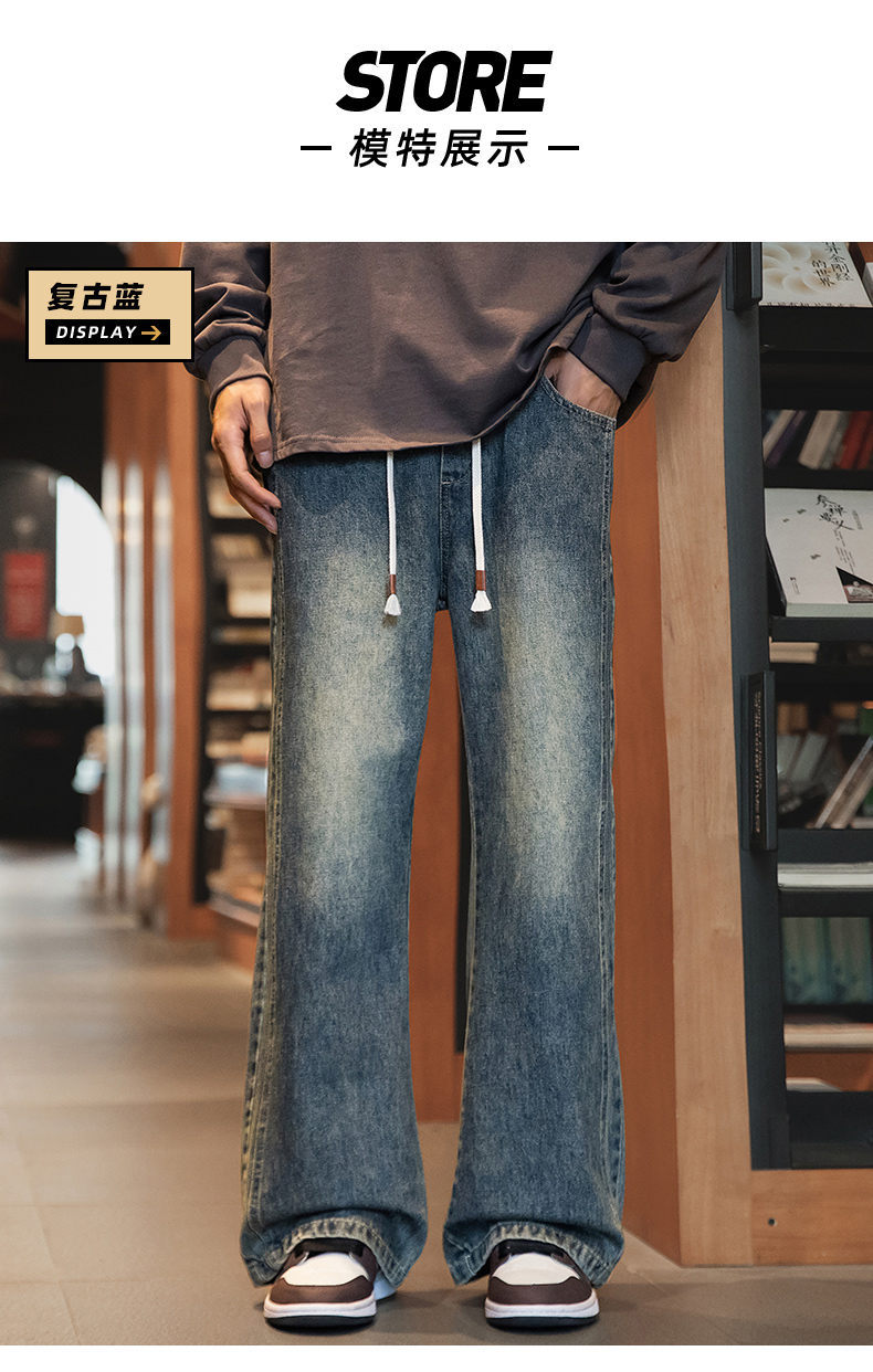 Джинсы Fanwo FW1540, новая модель 2024 года, в наличии, в американском стиле, расклешенные, для мужчин, осенне-зимние, брендовые, свободные, прямые, в пол.