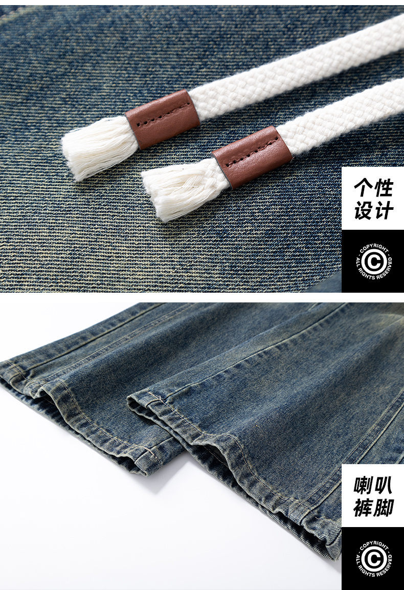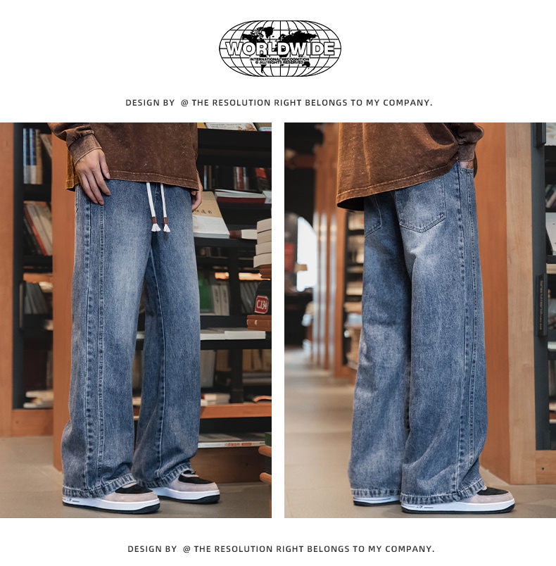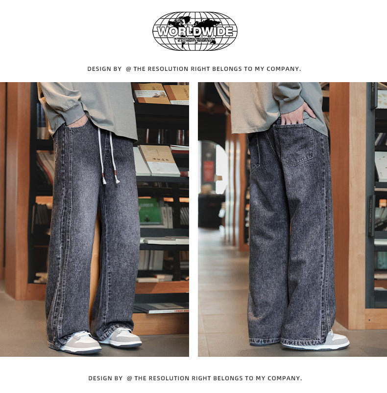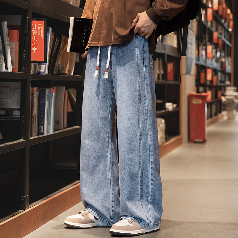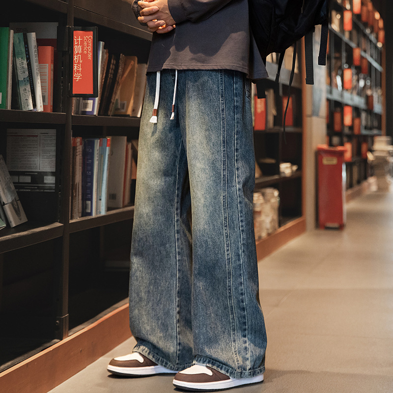 Джинсы Fanwo FW1540, новая модель 2024 года, в наличии, в американском стиле, расклешенные, для мужчин, осенне-зимние, брендовые, свободные, прямые, в пол.