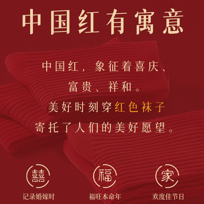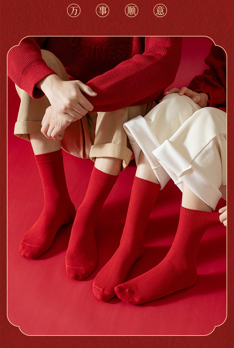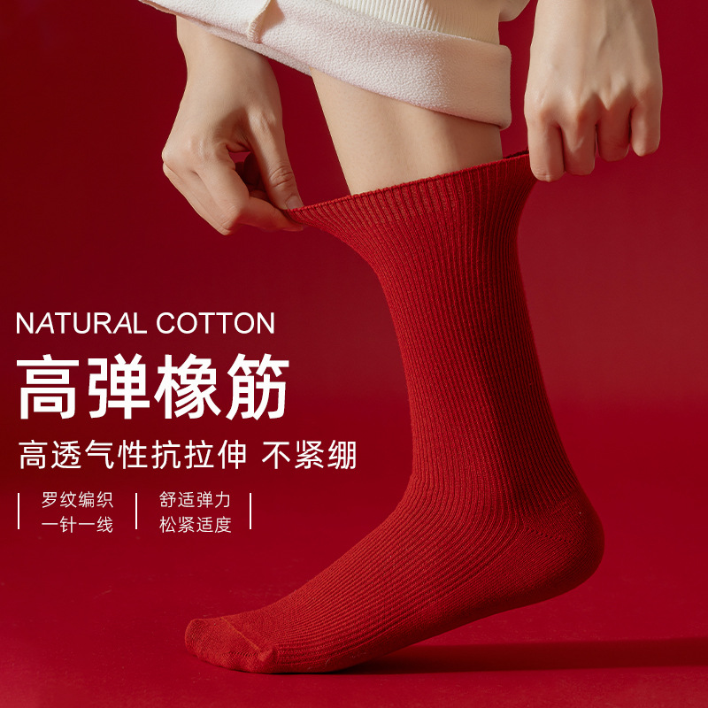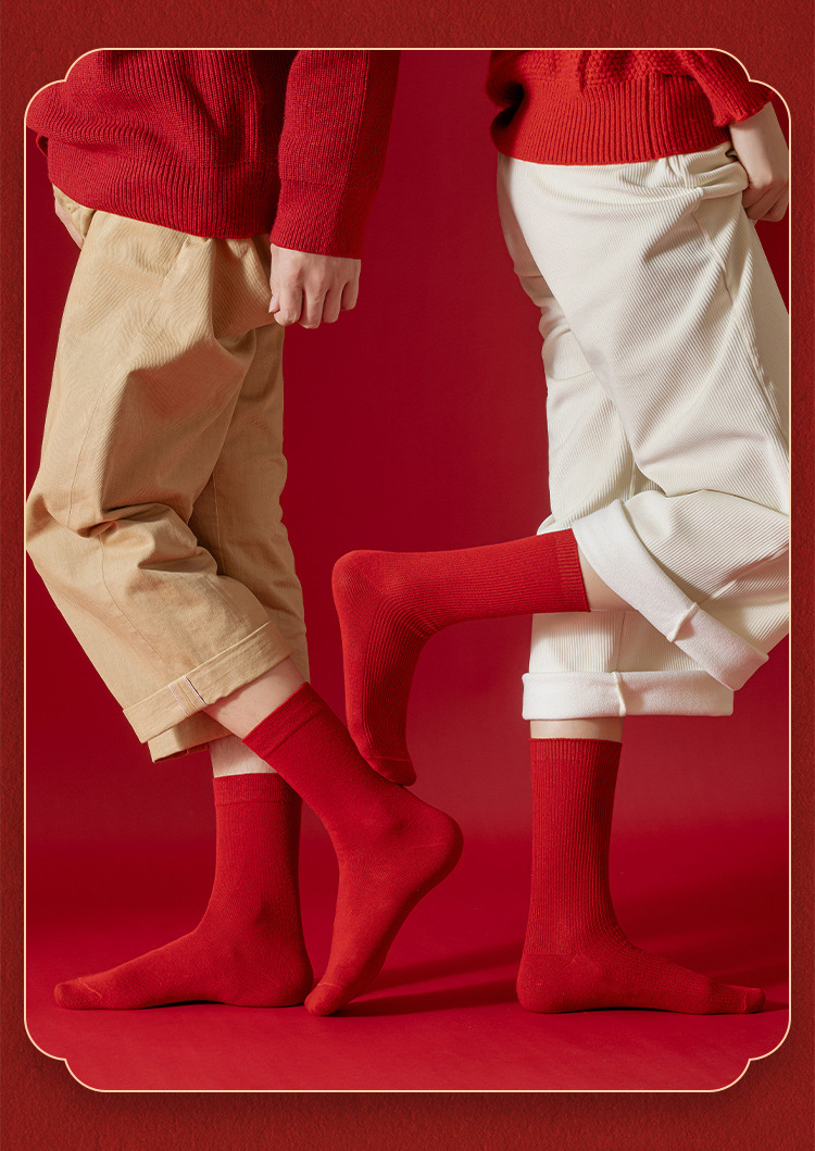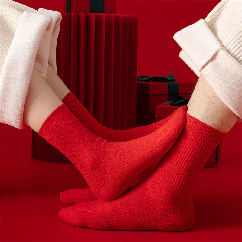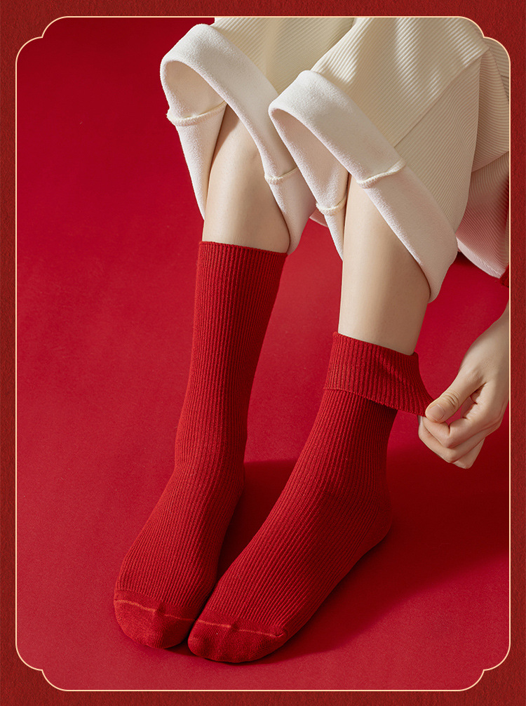 Красные носки к Году Лошади, длиной до середины икры, утолщенные для осени и зимы, из чистого хлопка двойной вязки, однотонные, подходят для свадеб, пар и празднования Нового года.