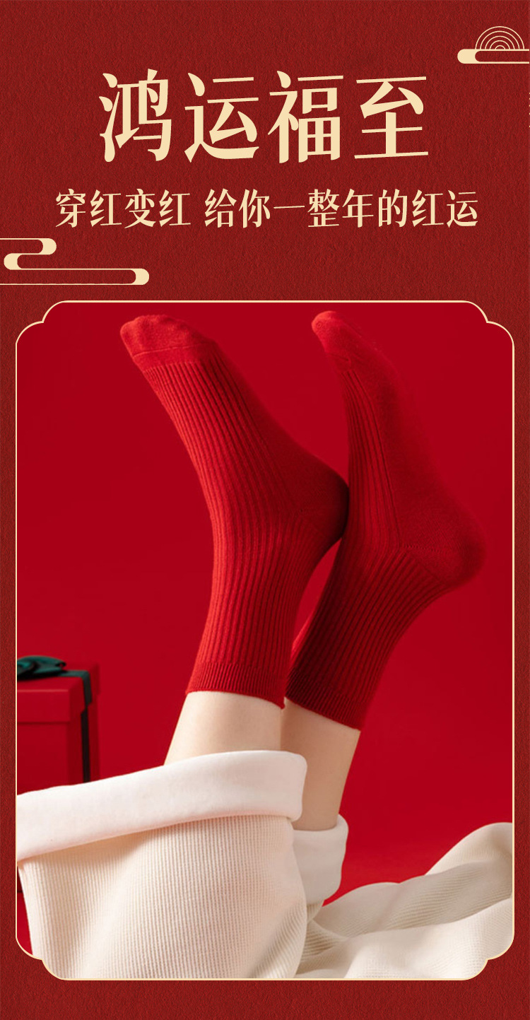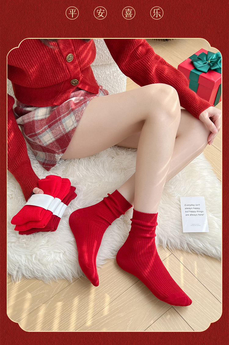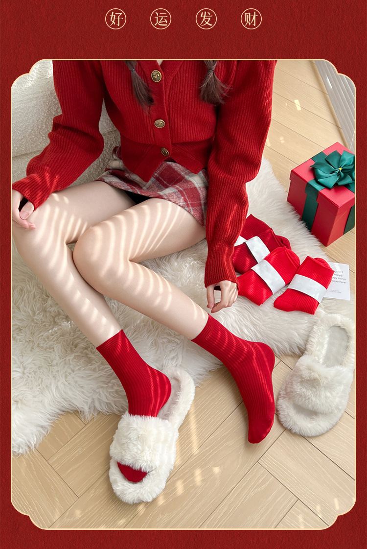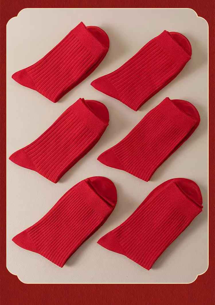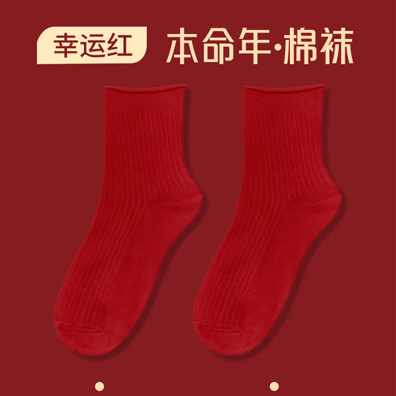 Красные носки к Году Лошади, длиной до середины икры, утолщенные для осени и зимы, из чистого хлопка двойной вязки, однотонные, подходят для свадеб, пар и празднования Нового года.