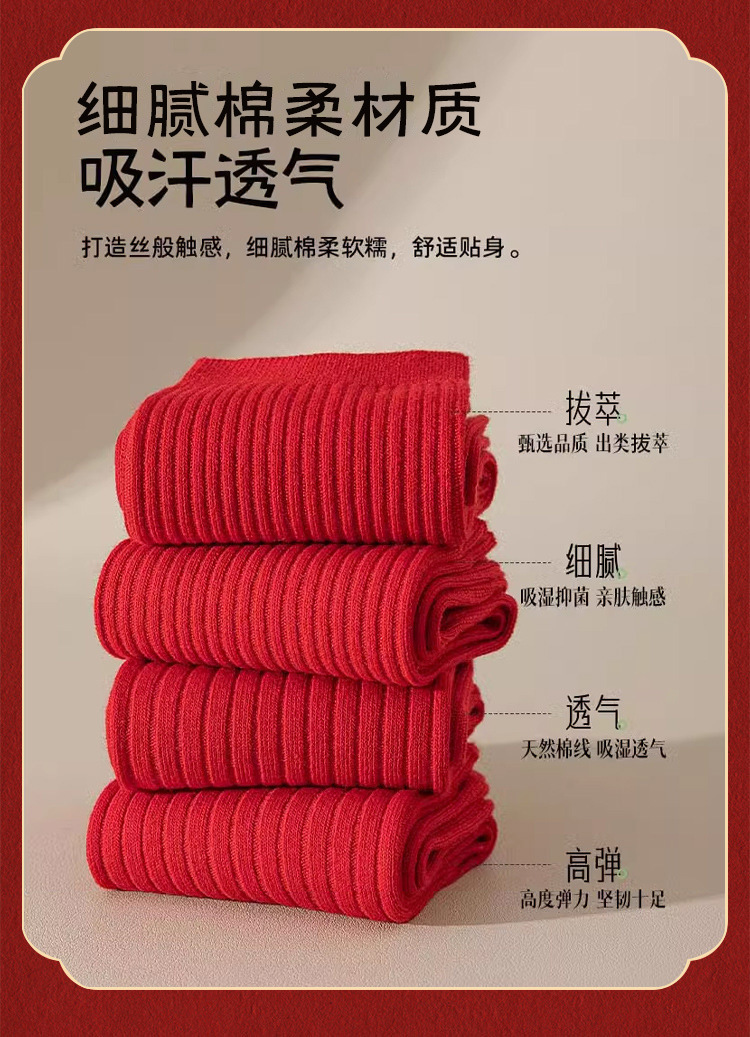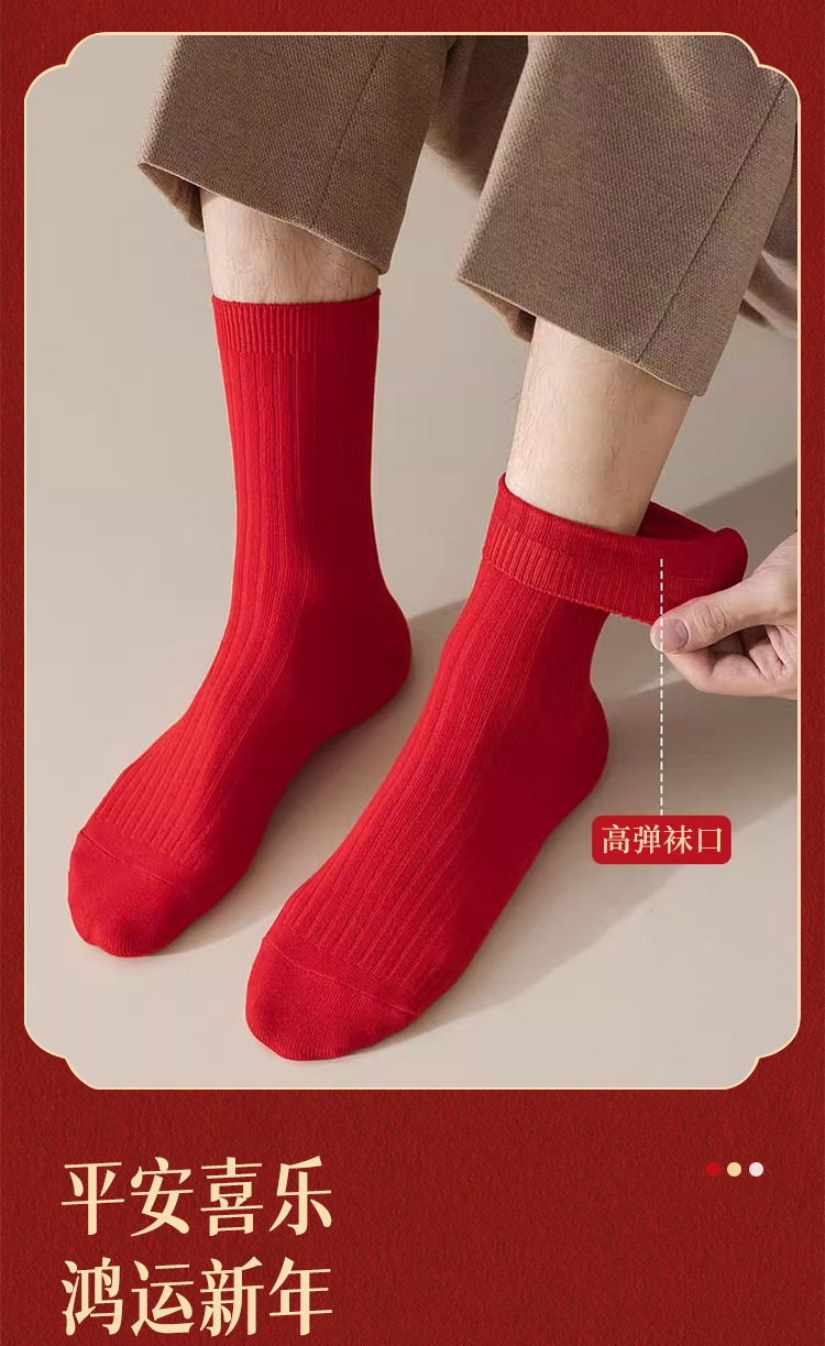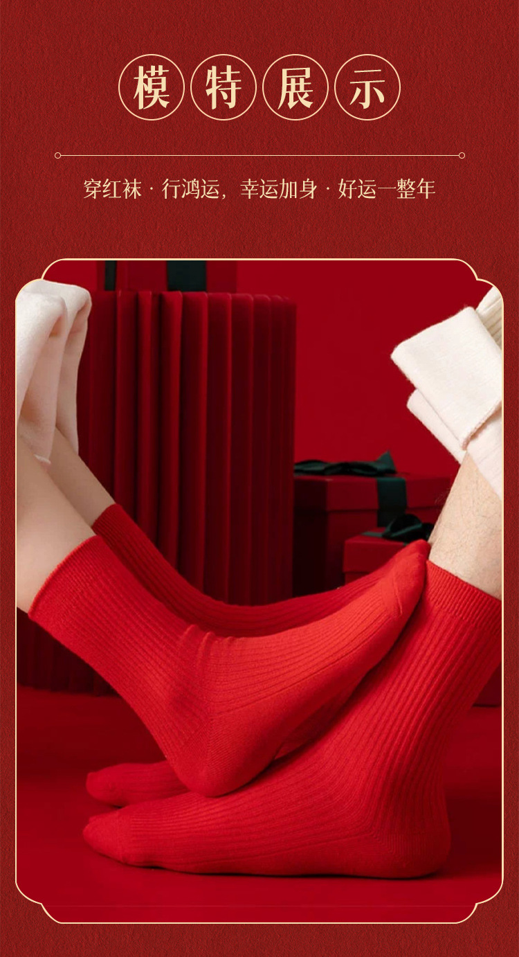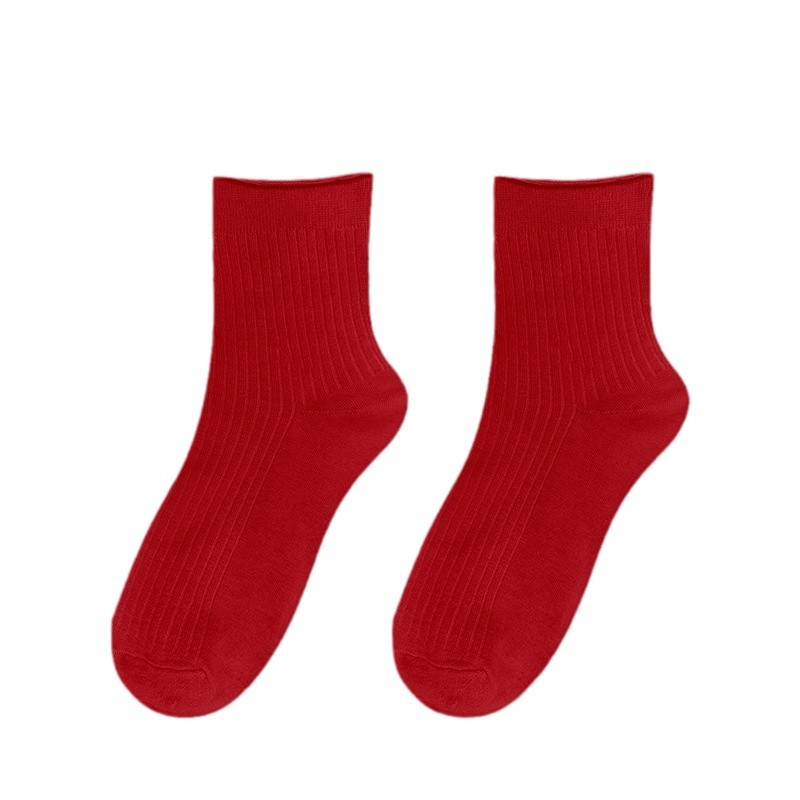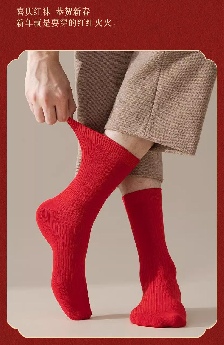 Красные носки к Году Лошади, длиной до середины икры, утолщенные для осени и зимы, из чистого хлопка двойной вязки, однотонные, подходят для свадеб, пар и празднования Нового года.