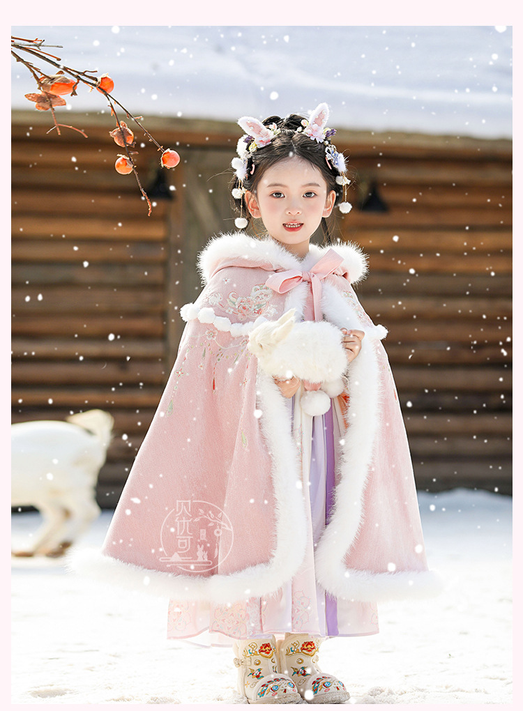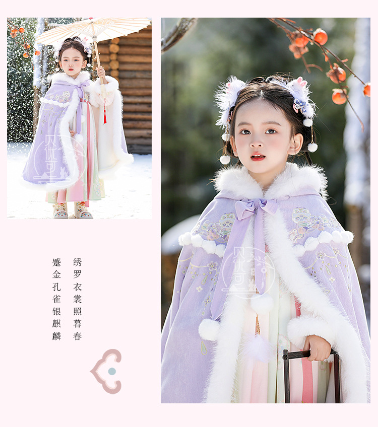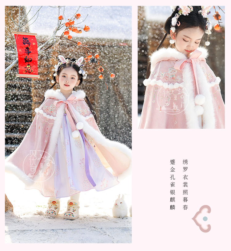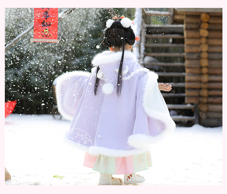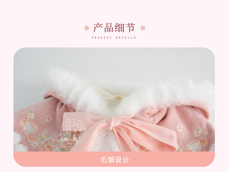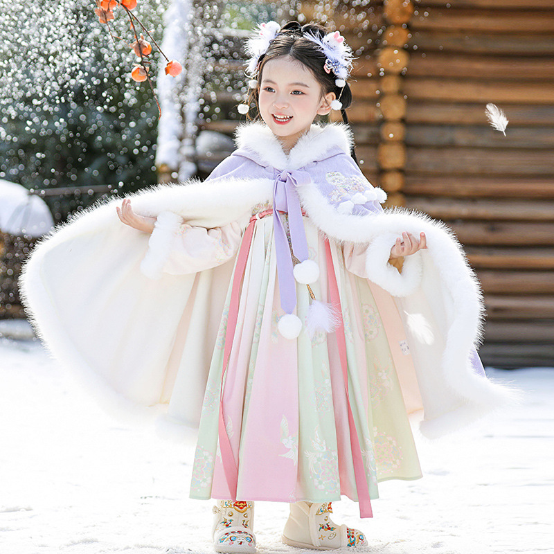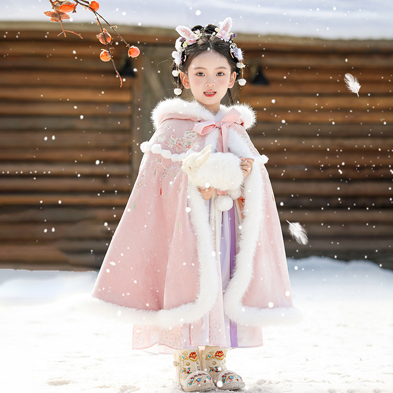 Зимний новинка 2025: Детский плащ-ханьфу с флисовой подкладкой, утолщенный костюм в китайском стиле с большим меховым воротником, традиционный дизайн