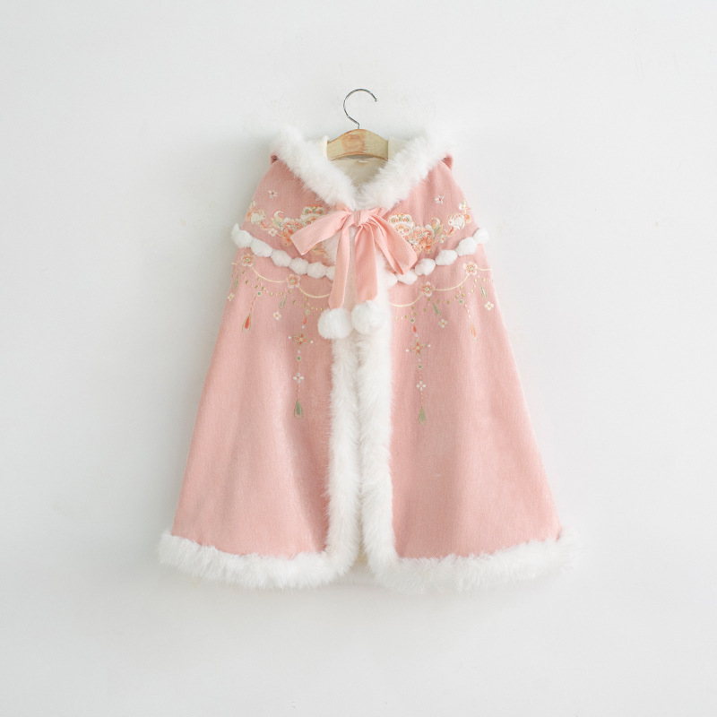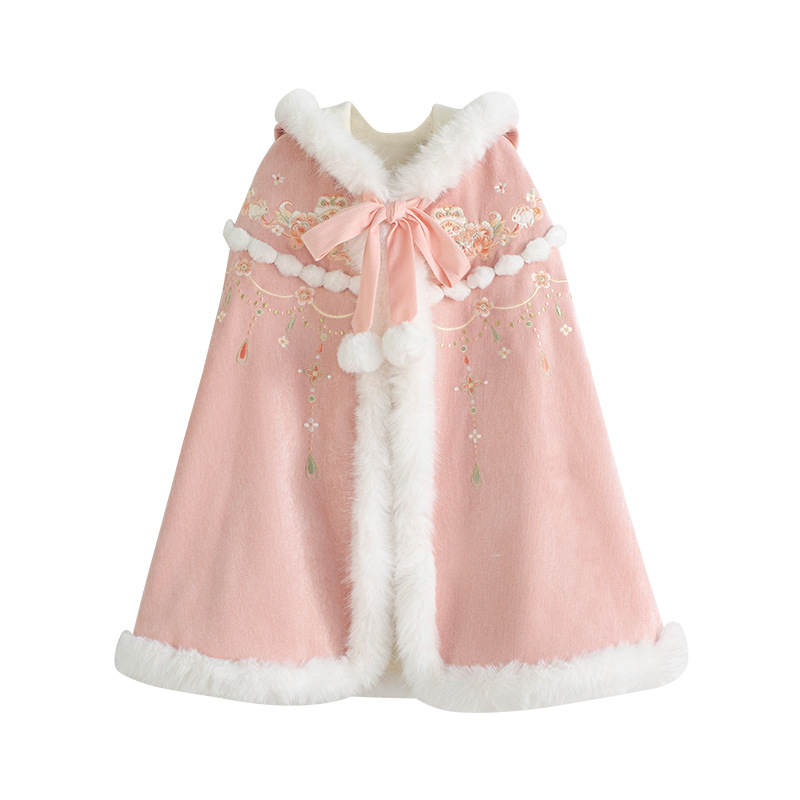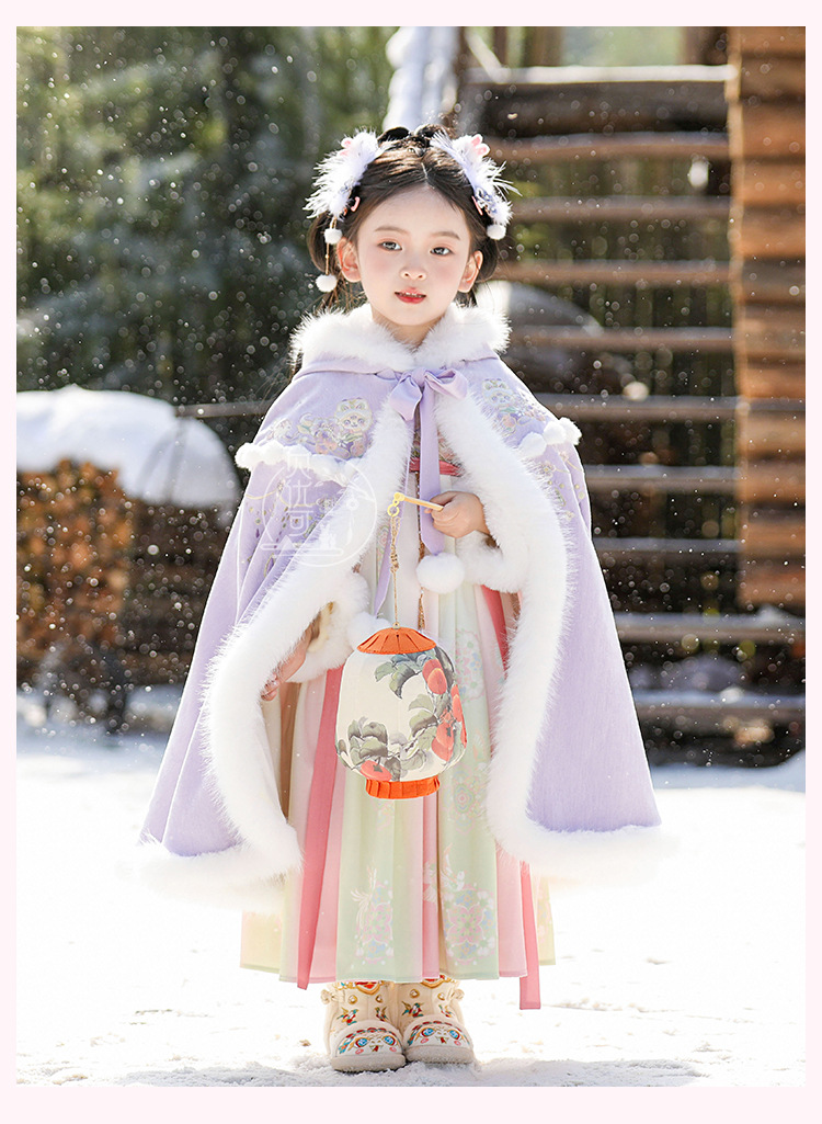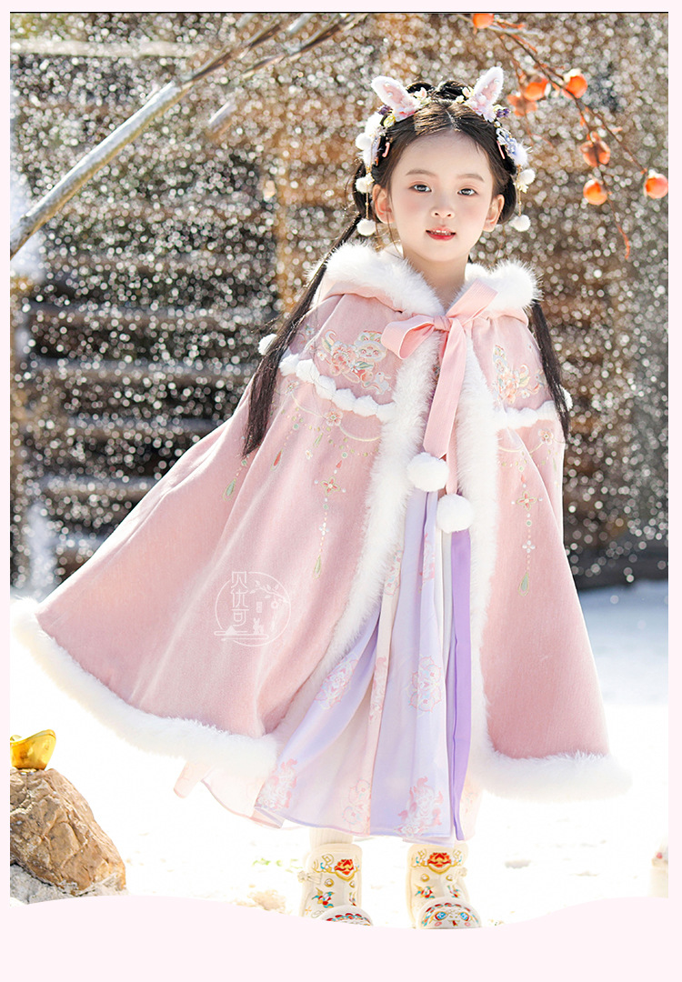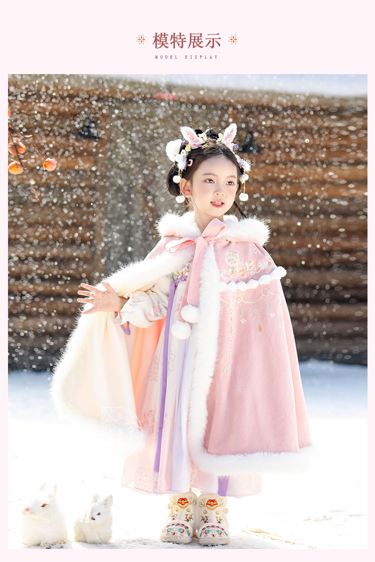 Зимний новинка 2025: Детский плащ-ханьфу с флисовой подкладкой, утолщенный костюм в китайском стиле с большим меховым воротником, традиционный дизайн