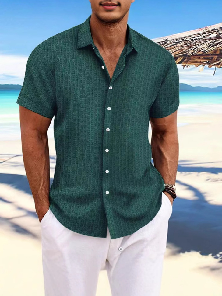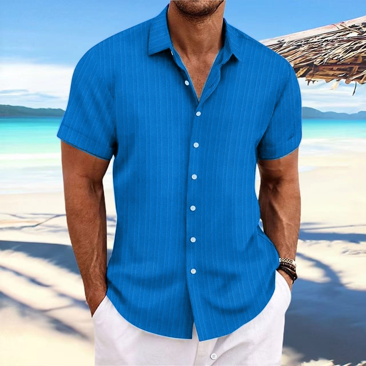 Трансграничный взрыв Amazon AliExpress новый мужской хлопок в полоску жаккарда повседневная свободная рубашка с короткими рукавами