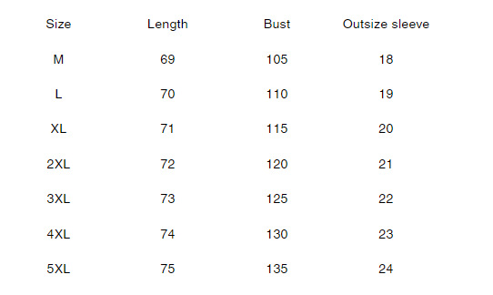 S; M; L; XL; 2XL; 3XL; 4XL; 5XL
