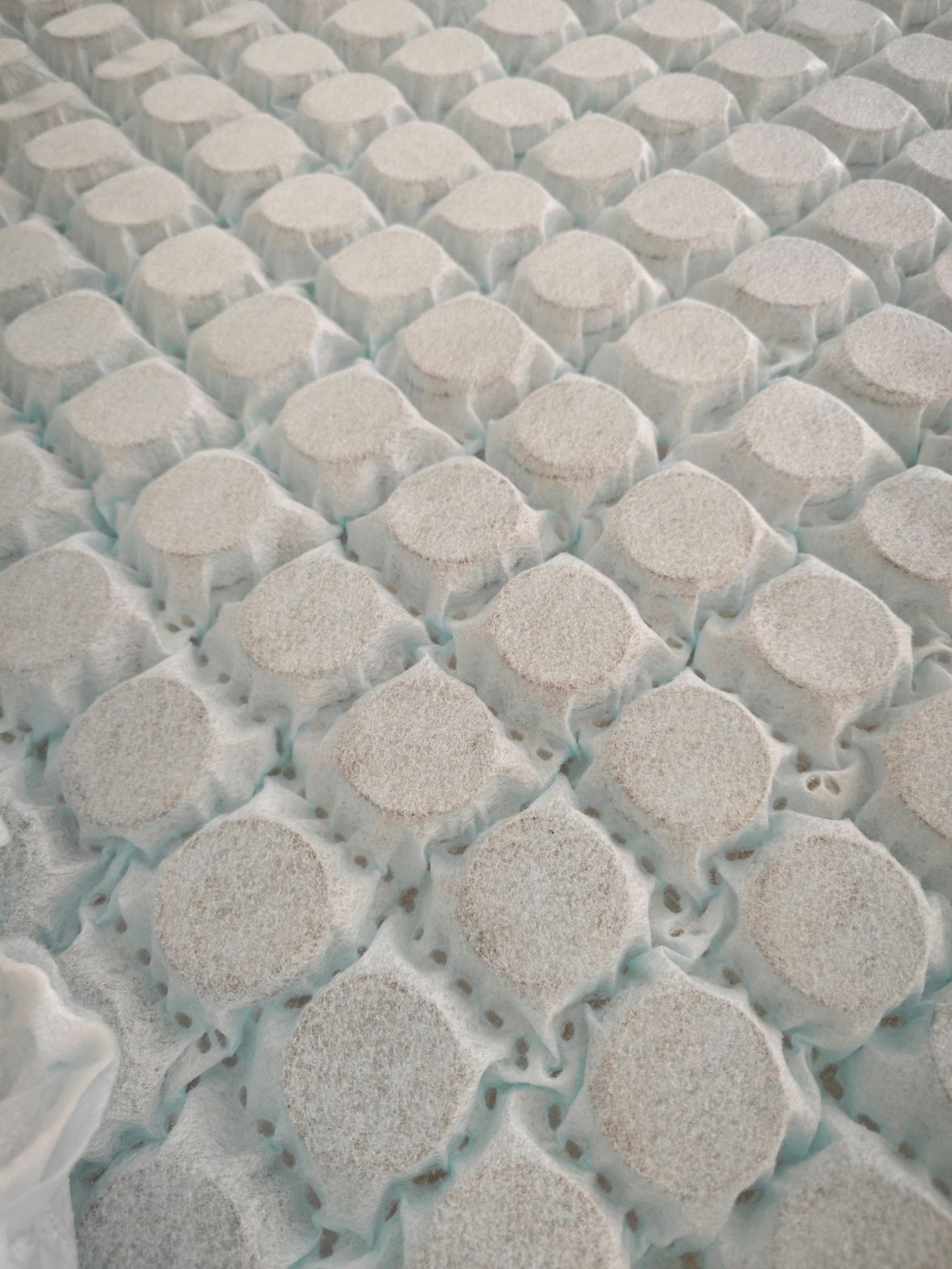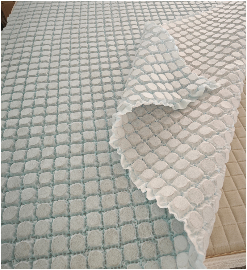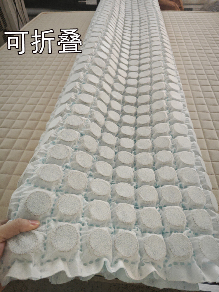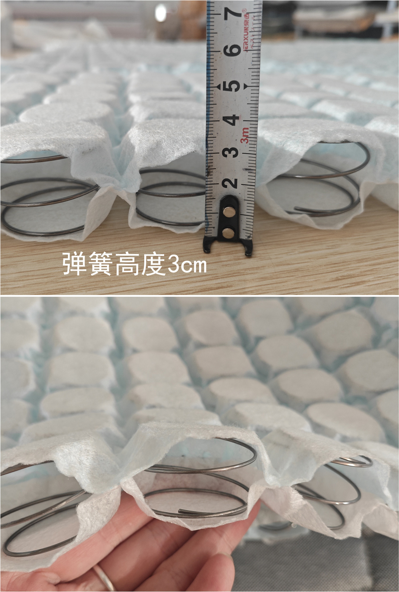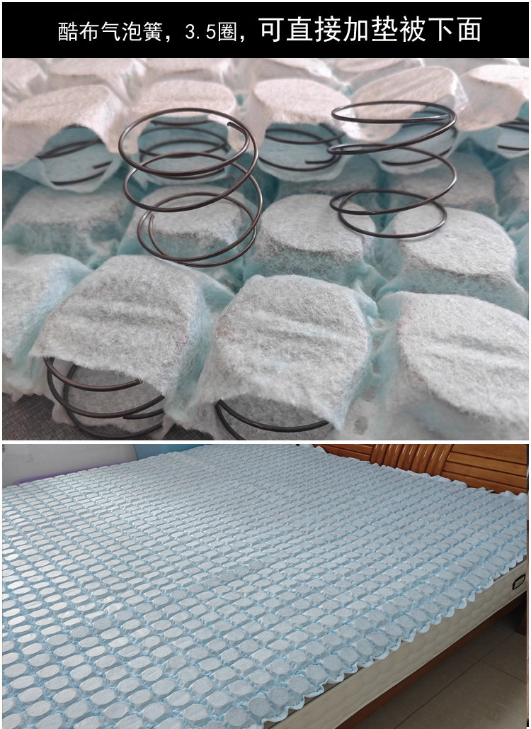 气泡弹簧,迷你弹簧,面包弹簧功能用途多,可加在床垫里面用,也可直接铺垫被下面用,十分的Q弹,可改善床垫的硬度,更加的贴合脊椎曲线。酷布包裹70号碳素钢丝线直径1.44mm, 弹簧孔径4.2cm 弹簧圈数3.5圈 ,1.8*2.0有36*39=1440个弹簧